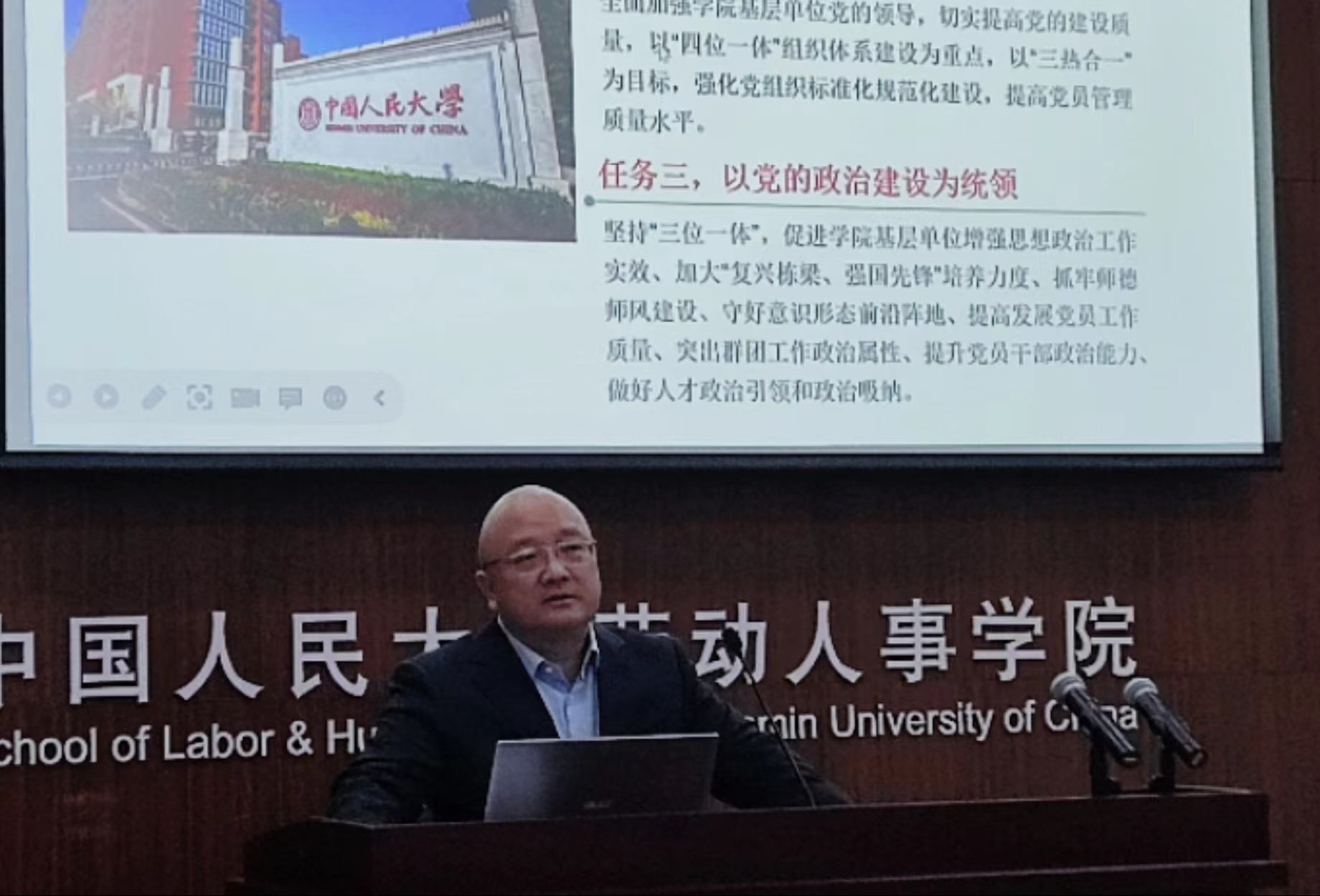劳动关系系党支部书记涂永前带领大家学习学院基层党建攻坚年专项行动的“十个以”要求,并结合学院建设、人才培养、专业发展进行了详细介绍,探索“以师生党员联学共建推动专业学科建设”的新模式。他强调,要以党的政治建设为统领,以研制世界一流人才培养、一流学科建设、一流学院发展和一流人才队伍建设规划为牵引,以构建自主知识体系为目标,准确把握“中国特色”和“世界一流”的辩证关系,大力推进有组织科研,健全学术治理体系,同时对标人民大学的战略部署,以更高标准制定完善硬硬av 劳动关系学科的高质量发展规划。