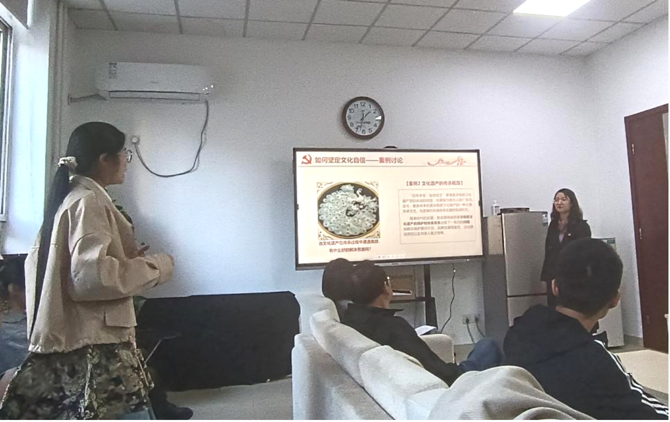 我国有独特的历史、独特的文化、独特的国情,立足新时代新征程,中国青年的奋斗目标和前行方向归结到一点,就是坚定不移听党话、跟党走,努力成长为堪当民族复兴重任的时代新人。习近平文化思想为做好新时代新征程宣传思想文化工作、担负起新的文化使命提供了强大思想武器和科学行动指南。通过本次党日活动的开展,教师党员与学生党员不仅在理论层面深入学习了习近平文化思想,还从实践出发讨论了坚定文化自信的现实路径,进一步贯彻落实习近平新时代中国特色社会主义思想,更好担负起新的文化使命,共同努力创造属于我们这个时代的新文化。