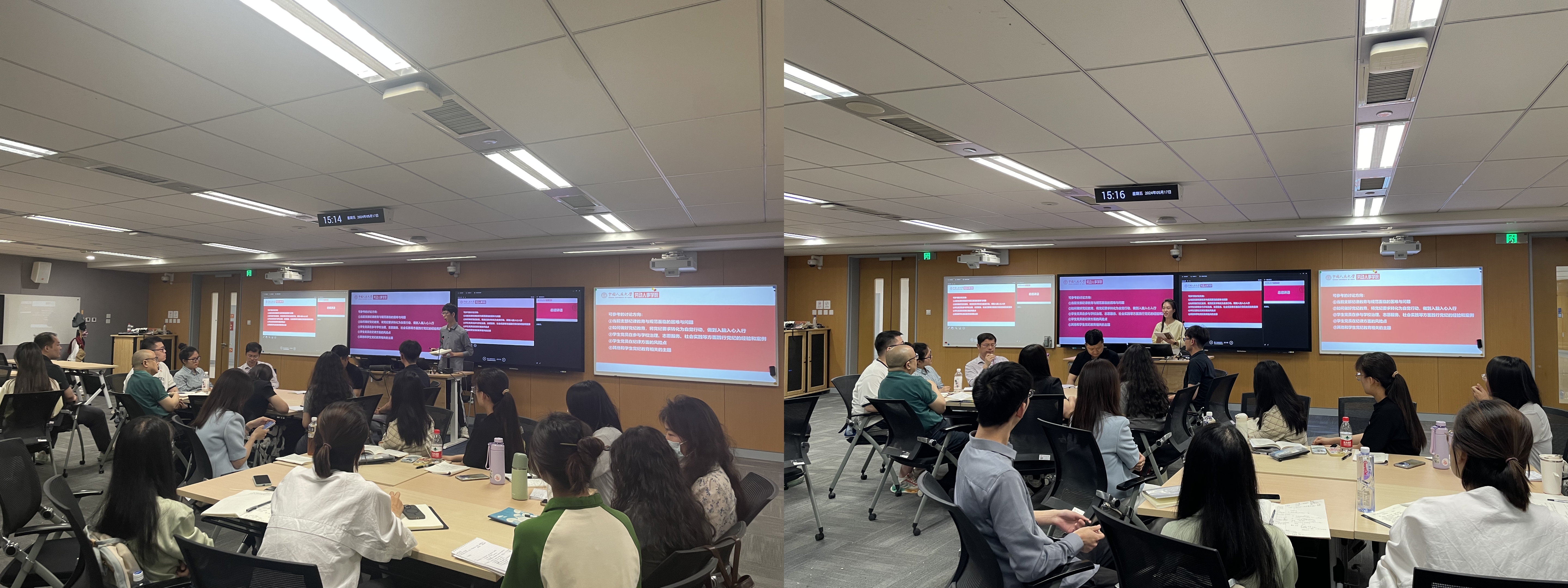主题分享环节之后,学院师生党员共分为三个小组,围绕党纪教育面临的困难、如何将党纪要求转化为自觉行动、学生党员践行党纪的经验和案例、学生党员在纪律方面的风险点等问题开展研讨。讨论结束后,各组派代表分享了本组的研讨成果。