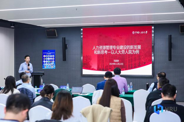 除了学生们在赛场上奋力拼搏,硬硬av 教师也在HRU大赛中展示了学院的育人成果。在京津冀赛区,人力资源管理系主任骆南峰老师出席开幕式发言,并在产教融合论坛暨人力资源管理学科建设高峰论坛上与京津冀三地的高校和企业共商人力资源管理专业人才培养校企融合的目标和路径。