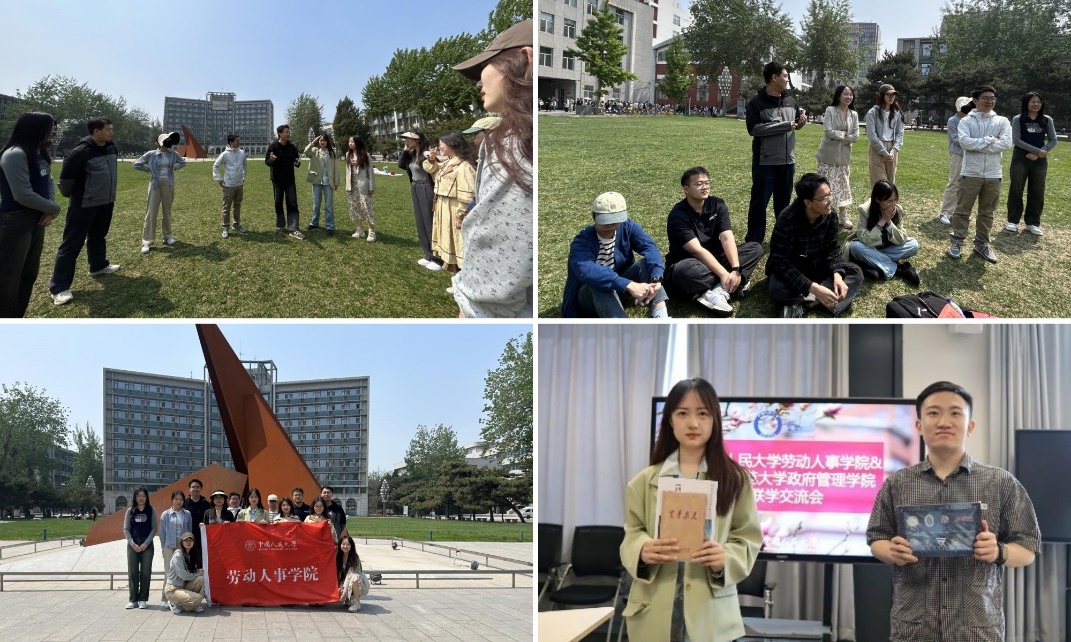 在座谈交流、拓学活动后,两院代表互相交换了学院纪念品,且继续开展了户外研学活动及草坪联谊活动。在人大劳人院代表的引导介绍下,两院与会同学依次参观了立德楼、求是楼、人文楼、校史馆等人大地标建筑,并且在教二草坪开展了生动、有趣的集体游戏,充分增进了两院同学们彼此之间的认识,拉近了院际间的距离,埋藏下两院深厚友谊的春苗,同时也为两院与会同学留下了深刻的春日回忆。