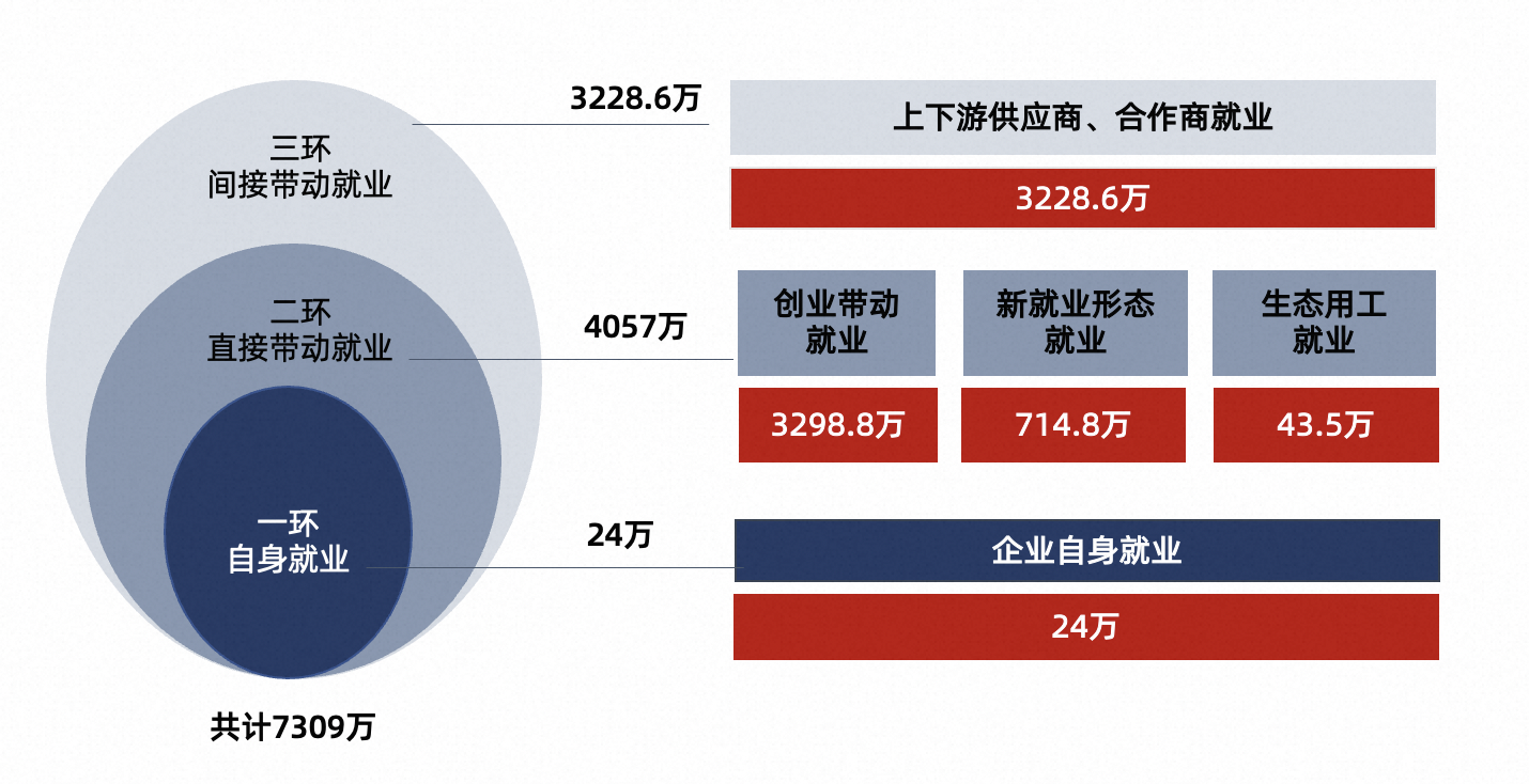 《报告》以阿里巴巴数字生态体系为案例,分别从带动就业能力、提升就业质量、促进就业普惠三个维度来评估平台企业的就业价值。