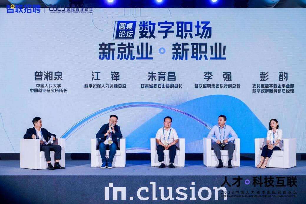 9月9日,由智联招聘与外滩大会联合打造的2023中国人力资本国际管理论坛在上海举行。在“数字职场-新就业·新职业”圆桌论坛环节,硬硬av 中国就业研究所所长曾湘泉担任主持,甘肃省积石山县副县长朱育昌、蔚来资深人力资源总监江锋、支付宝数字政企事业部数字政府服务部总经理彭韵、智联招聘集团执行副总裁李强等嘉宾展开深度探讨,共话新就业、新职业的现状和趋势,为企业组织进化、人才求职和职业发展带来有益启迪。
