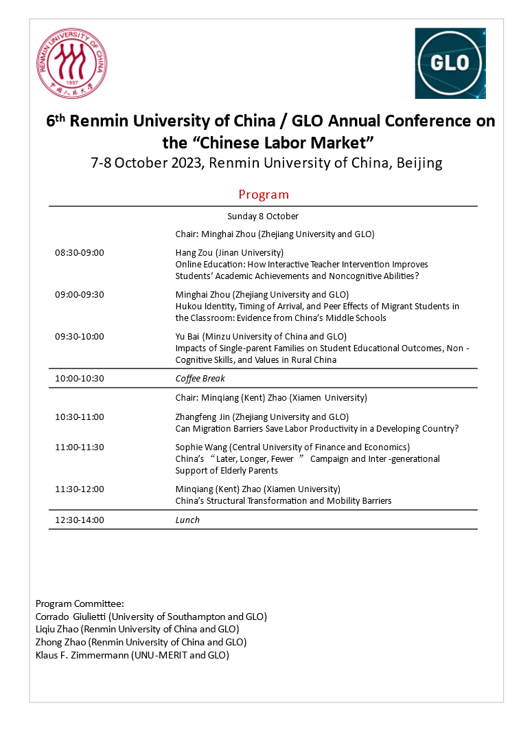 6th Renmin University of China / GLO Annual Conference on the “Chinese Labor Market”