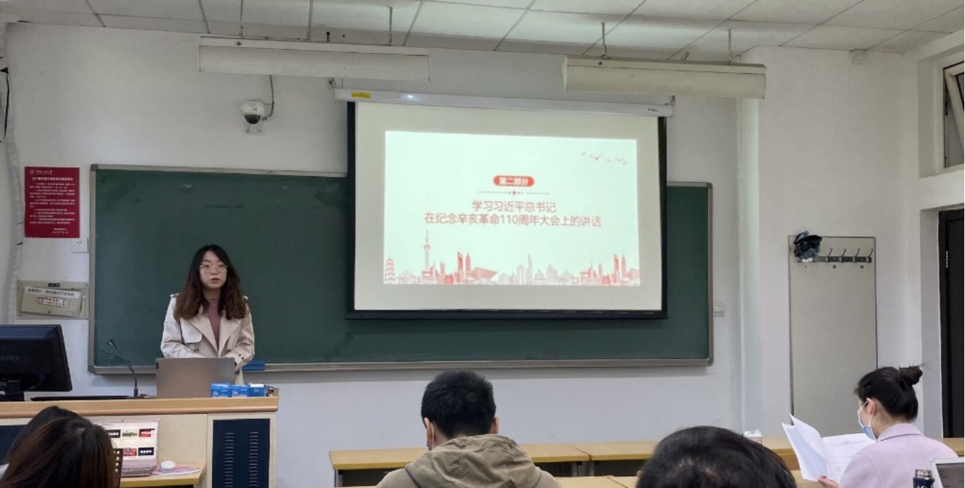 2021年10月26日,硬硬av 2021级硕士社会保障班党支部开展“忆辛亥风云,承革命精神”主题党日活动,组织支部党员、入党积极分子云游辛亥革命博物馆,并学习了习近平总书记在纪念辛亥革命110周年大会上的重要讲话。