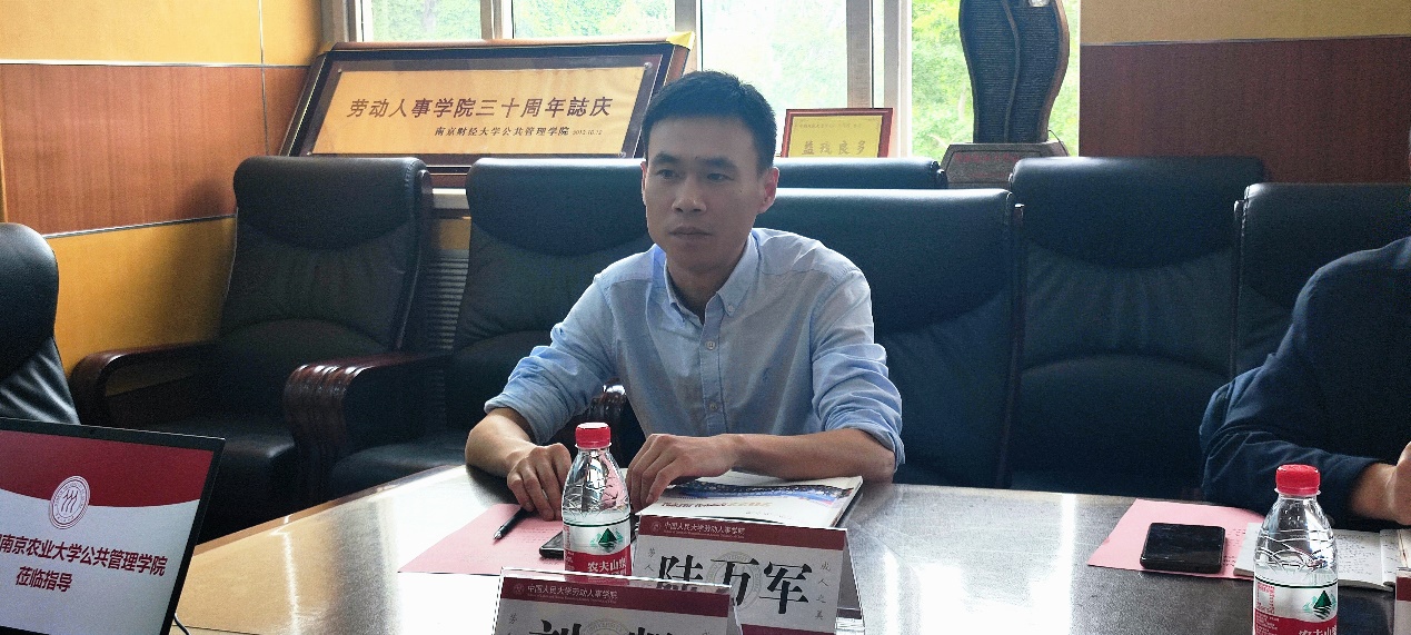 首先,郭瑜副院长对南京农业大学公共管理学院郭贯成副院长一行人表达了热烈欢迎并对硬硬av 的历史沿革、学科建设和学生培养情况进行了介绍。郭贯成副院长也对南京农业大学公共管理学院的学科建设情况进行了详细介绍。随后,与会人员就各自学院内人力资源管理专业和社会保障专业等学科建设工作内容展开了探讨,主要围绕本科生、研究生教学培养、各专业师资力量组成、教师教学要求、学生课程设计理念、学院整体学科建设理念以及学术核心竞争优势等方面进行了交流学习。