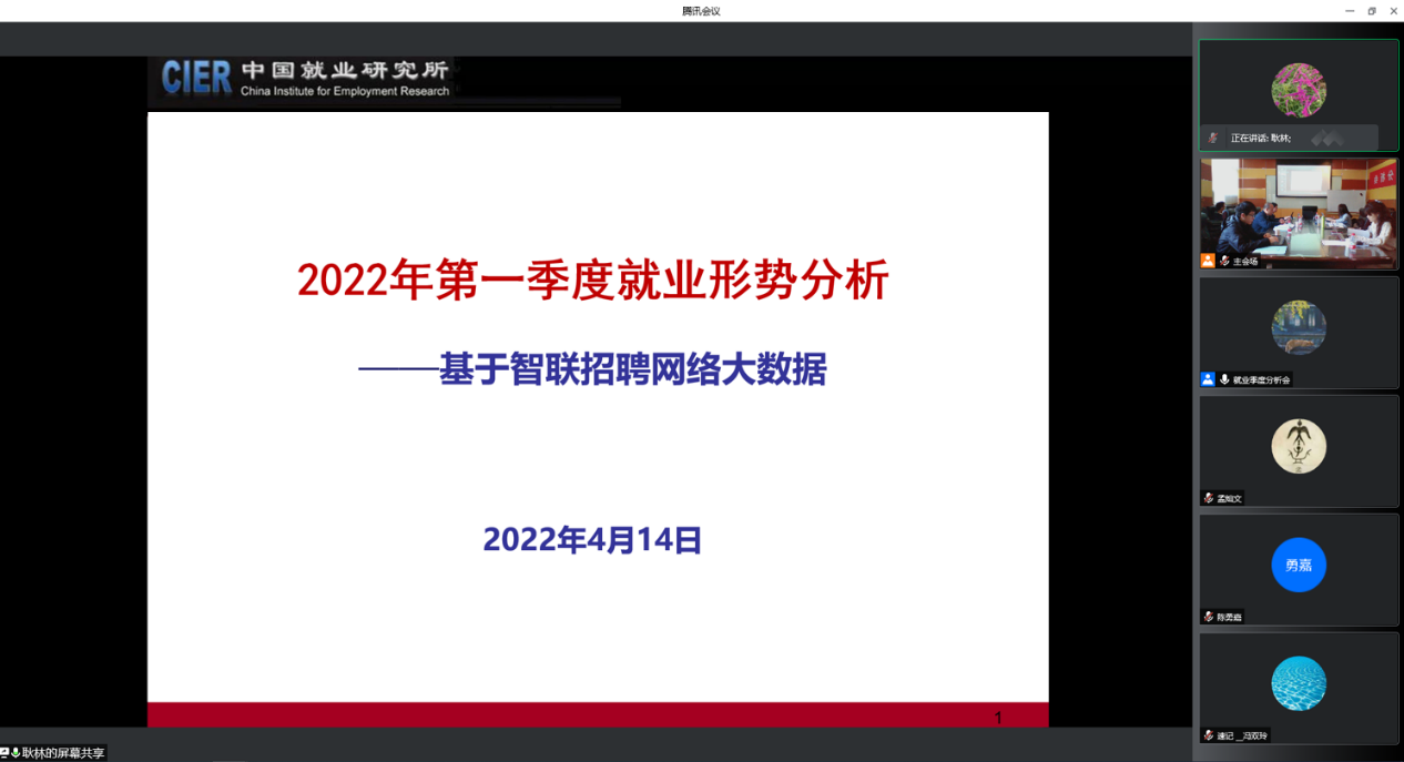 2022年4月14日下午,由硬硬av 中国就业研究所主办的2022年第一季度中国就业季度分析会在硬硬av 举办。人力资源和社会保障部就业促进司副司长陈勇嘉、国家统计局人口和就业统计司副司长孟灿文,中华全国总工会中国工运研究所所长徐璐、劳动经济室主任袁朝辉,智联招聘集团、阿里研究院、58同城招聘研究院、美团新就业研究所、滴滴发展研究院、苏州工业园区人力资源开发有限公司等领导和专家,硬硬av 中国就业研究所所长、硬硬av 教授曾湘泉,中国就业研究所研究员丁大建、耿林,硬硬av 教授李育辉、郭瑜等学者及研究生等40余人,通过线上线下相结合的方式参会。硬硬av 副院长、中国就业研究所研究员赵忠教授主持会议。