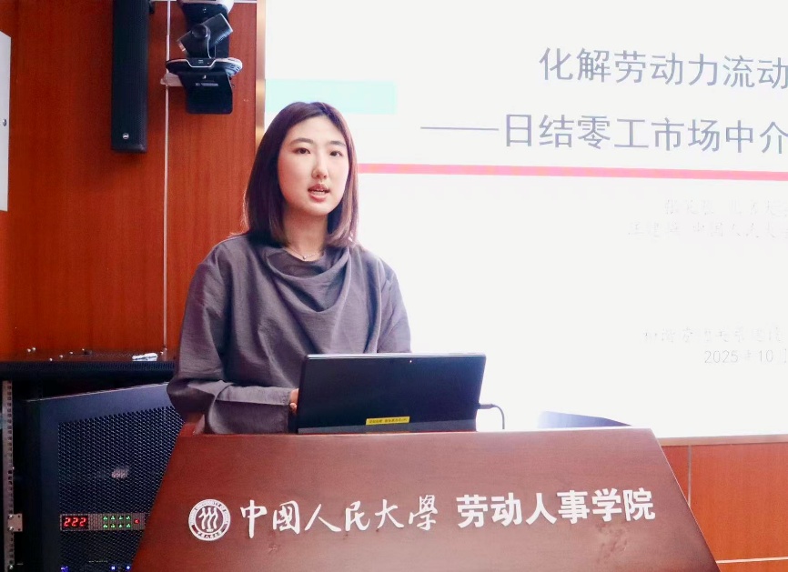 北京大学社会学系张笑辰博士研究生分享了其与硬硬av 汪建华副教授合作的研究成果。他们通过对日结零工市场的调研,探讨了弹性积累体制下零工中介的经营管理策略与运作机制,揭示了中介在劳动力的触达、输送与协同管理中的关键作用。