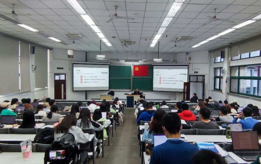 11月17日中午,学院党委副书记吴自强在公教三楼3101教室为全体学员讲授专题党课。吴自强结合“七一”重要讲话,以时间为轴,以实践为例,详细梳理中国共产党建党后所取得的系列成就,带领学员们回顾中国共产党建党百年历史,领悟伟大建党精神,引用习近平总书记对广大青年的寄语,希望学员们在学习和生活中以一名德才兼备的青年党员的标准严格要求自己。