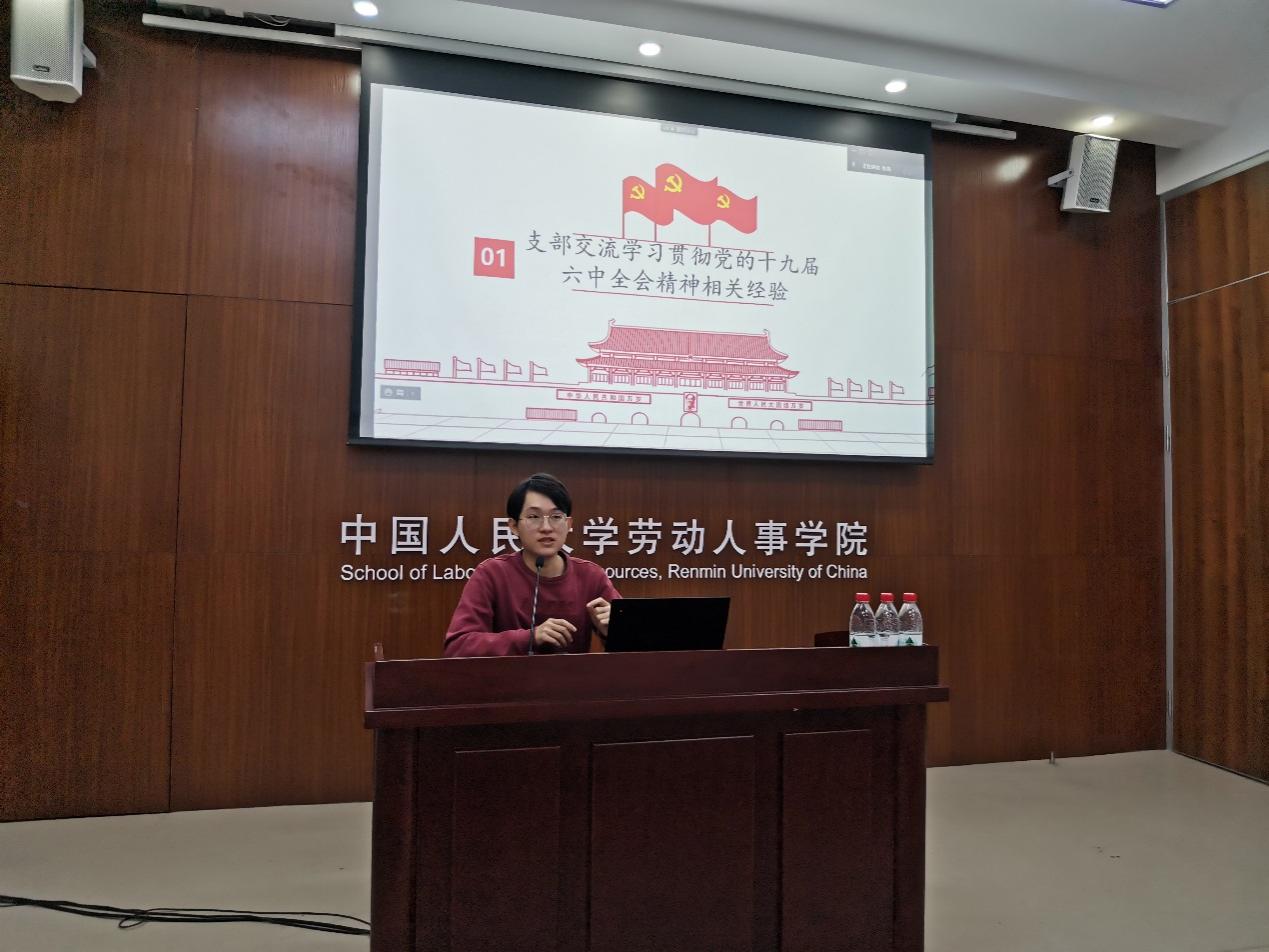 硬硬av 2021级硕士人力资源管理一班党支部书记曾昊从及时学、贯通学、主动学、学以致用四个方面分享了党支部学习贯彻党的十九届六中全会精神的相关经验。