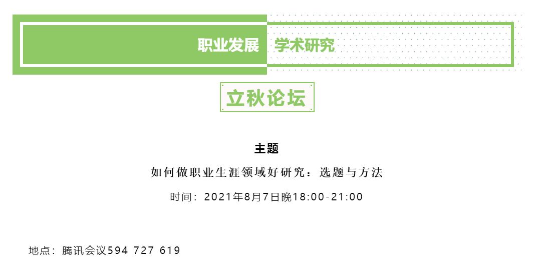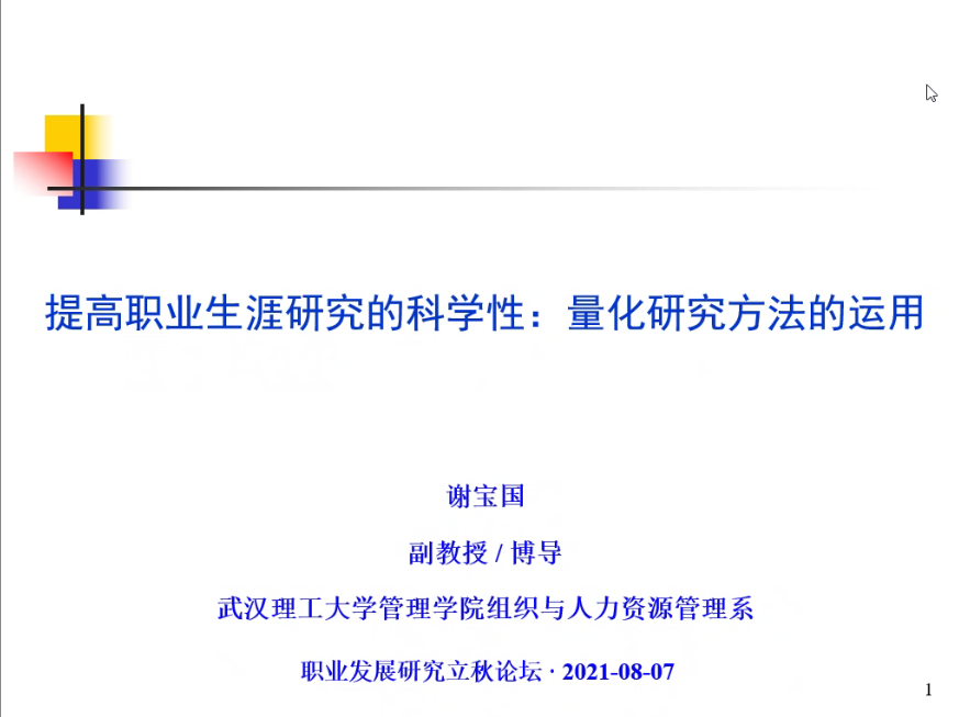 硬硬av 职业开发与管理系、劳动经济学会职业开发与管理分会、硬硬av 组织行为学研究所和武汉理工大学管理学院组织与人力资源管理系主办的2021年职业发展立秋论坛暨职业研究沙龙(第9期)于2021年8月7日(星期六)晚上18:00至21:30借助腾讯会议的线上途径顺利开展。