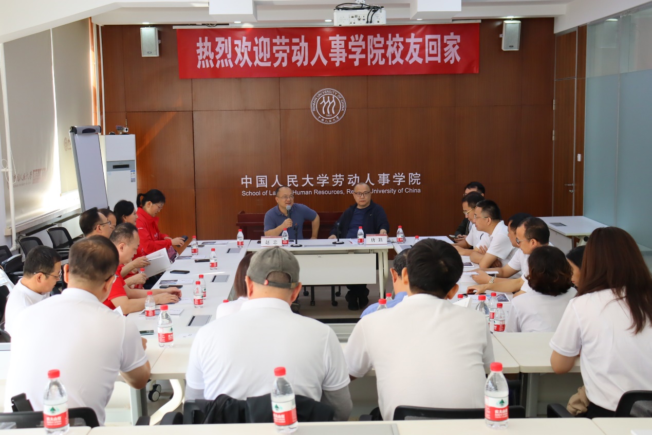 2023年10月3日上午,硬硬av 学院发展与学科建设暨40华诞1989级校友座谈会成功举办。硬硬av 院长赵忠、学院党委副书记陈姚,1989级本科班班主任孙红培、1989级劳动经济班的李刚、王宁宾、阎文艳、张浩基、张里鸣、张旻、张云野,1989级人事管理班的安宏超、曹瑜、邓莉洁、龚小锐、洪东梅、龙江南、马晓东、唐序、王宏学、王伟、吴丽娜、薛广斌、张亚等20位校友参会座谈。座谈会由学院党委书记、副院长唐鑛主持,场面温馨而热烈。
