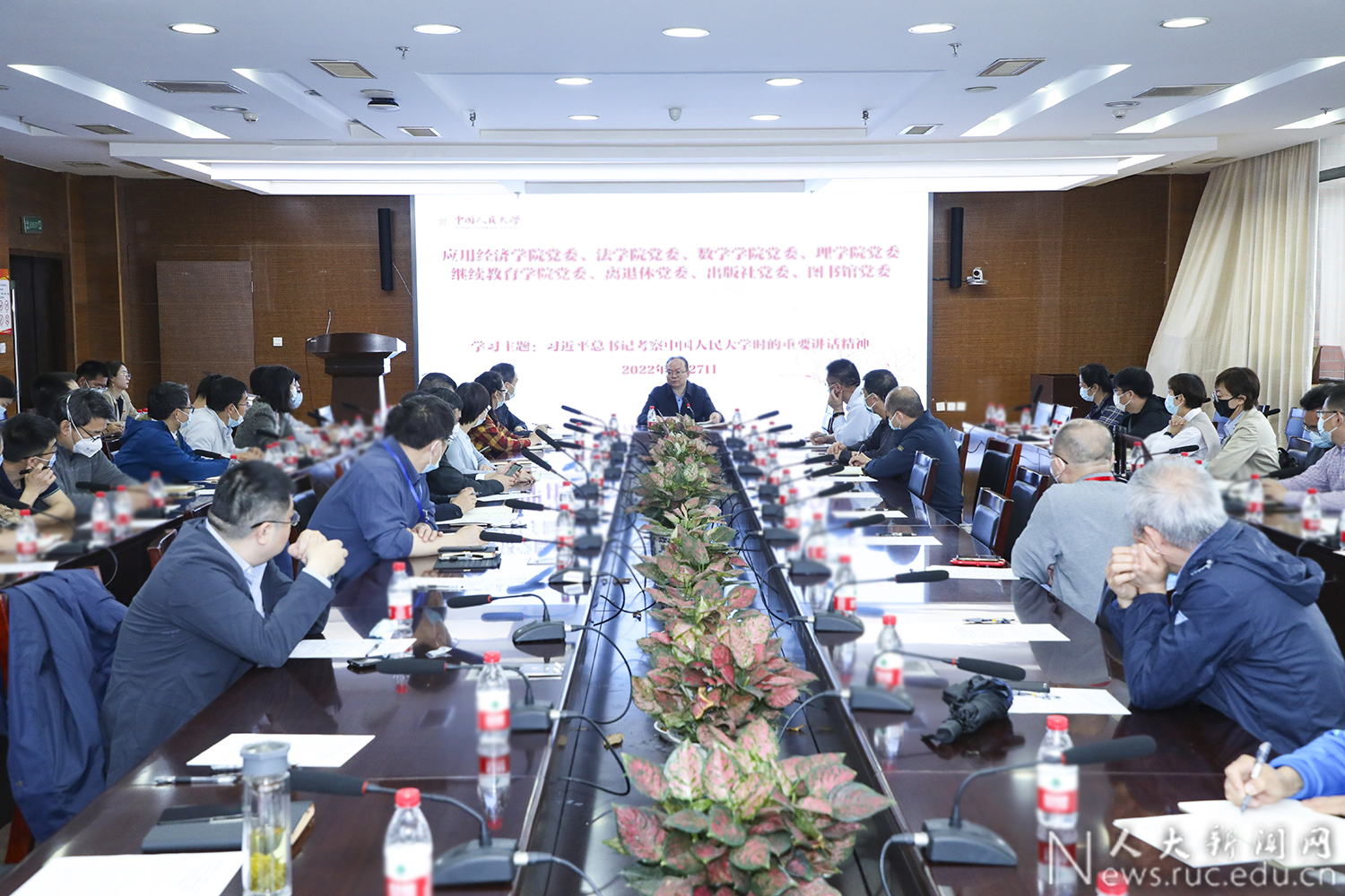 4月27日上午,硬硬av 副校长王轶到法学院党委、应用经济学院党委、数学学院党委、理学院党委、继续教育学院党委、离退休党委、图书馆党委、出版社党委宣讲习近平总书记在硬硬av 考察时重要讲话精神,法学院党委书记兼副院长杜焕芳主持会议。