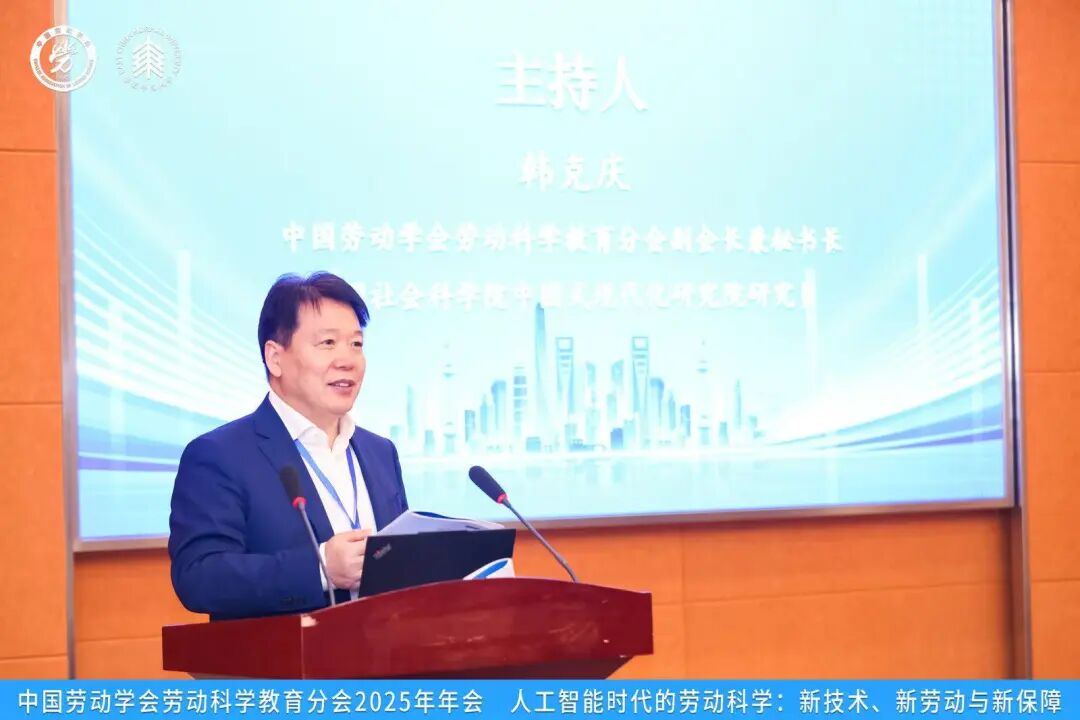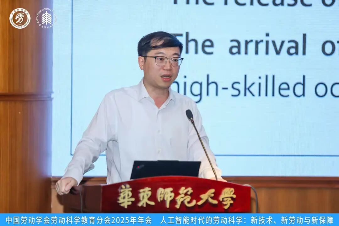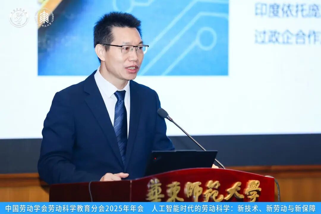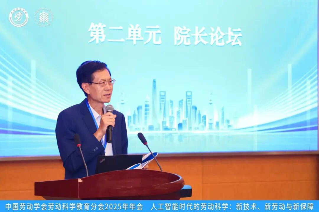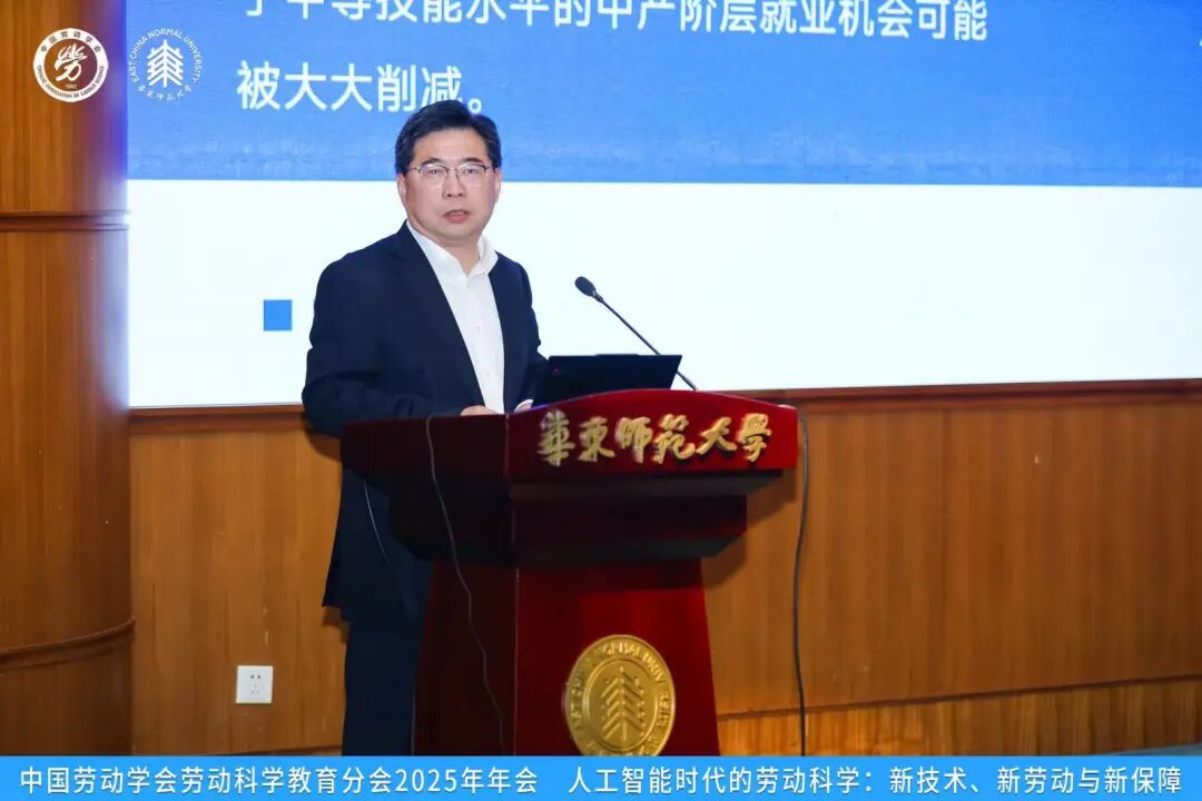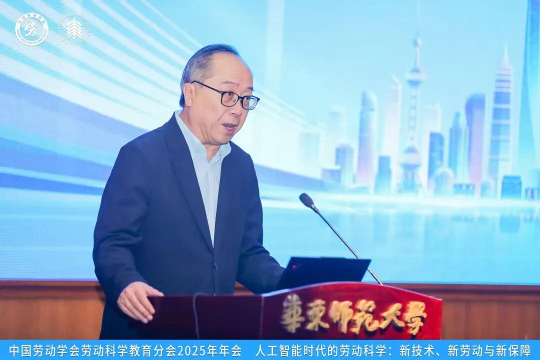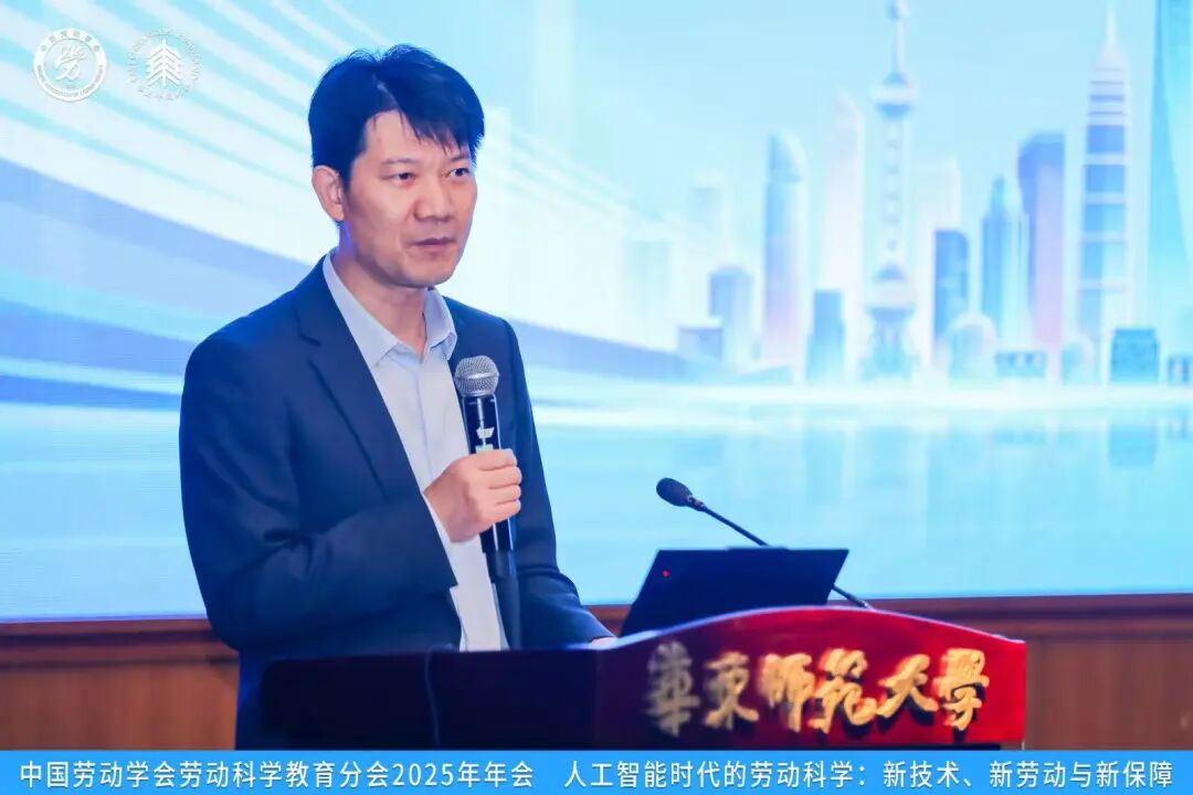 华东师范大学党委常委、副校长吴健教授代表承办方致欢迎辞。他对本次年会的举办表示热烈祝贺。他指出,本届年会的主题契合国家战略与时代需求,是推动劳动科学与教育研究协同创新的重要举措。他强调,华东师范大学近年来积极推进人工智能与教育融合发展的战略布局,公共管理学院以“人工智能与公共治理融合”为战略方向,组建一支覆盖新业态用工关系、劳动保障与心理研究的综合研究团队。学校将以本次年会为契机,进一步加强与学界的合作,推动人工智能与劳动科学的跨学科研究,服务国家重大政策决策需求。