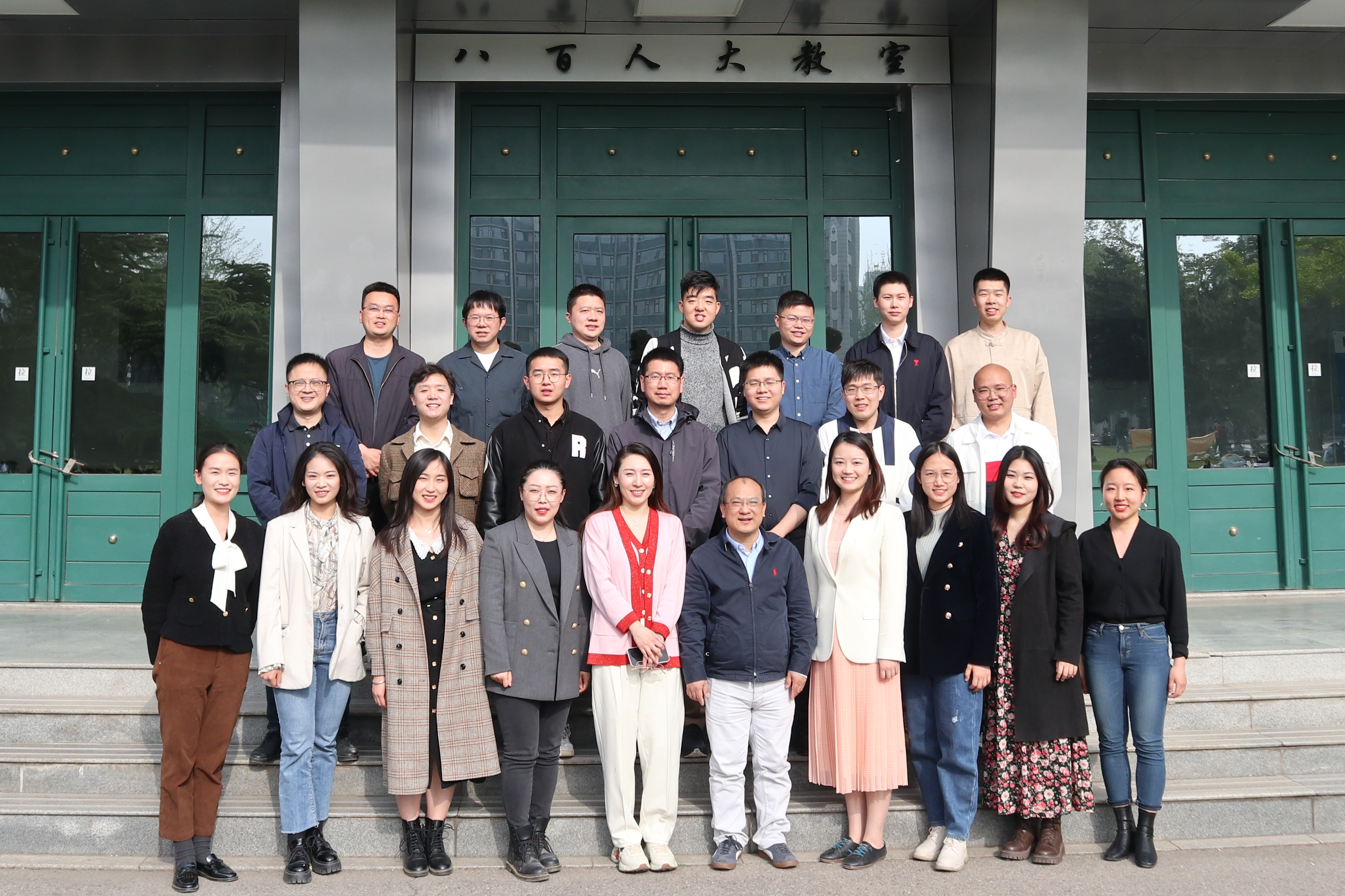 (与会师生校友代表在八百人大教室前合影留念)