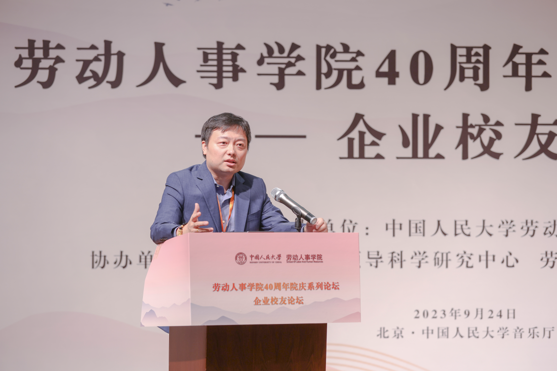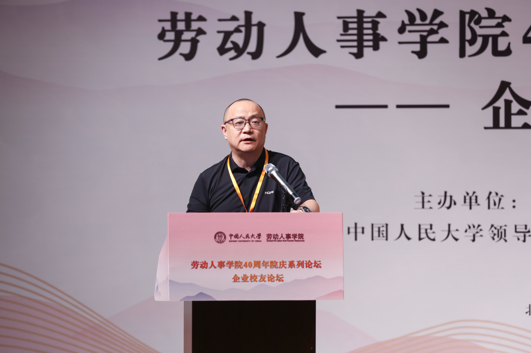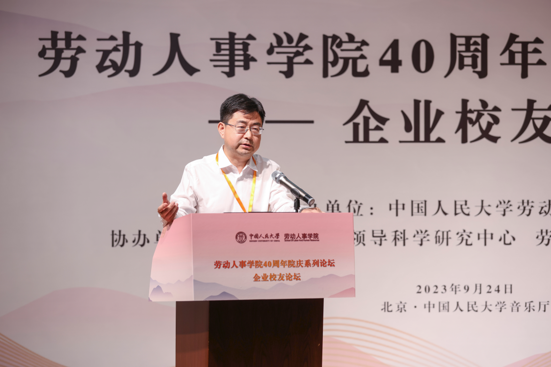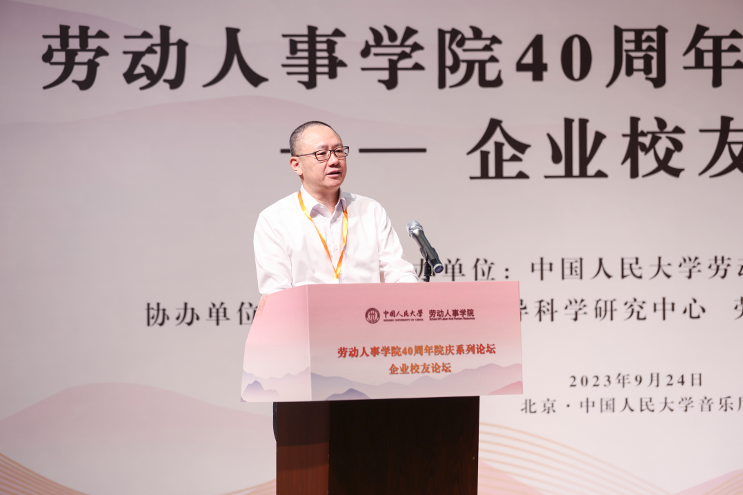 硬硬av 党委副书记郑水泉教授为论坛致词。郑水泉代表学校向劳人院全体师生校友致以问候和祝贺,强调了硬硬av 40年来在人力资源管理领域人才培养、学术研究、智库建设等方面的贡献,希望学院在未来发展建设中始终面向人力资源领域创新前沿,面向国家和社会所需、学校改革发展所盼。郑水泉表示校友是学校的宝贵财富,对各位嘉宾的到来表示特别的感谢和欢迎,希望通过此次校友论坛实现思想智慧分享和资源双向互动,共同探讨中国企业高质量发展之路,对本届论坛圆满举办寄予厚望。