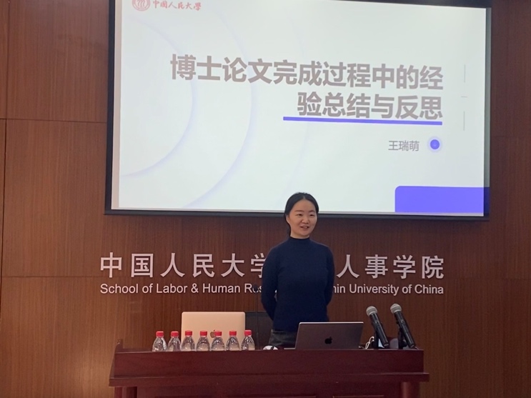 2023年11月27日(星期一)中午12:30至1:30,硬硬av 40周年院庆--“蓬‘博’向上”学术午间会系列活动第五场在求是楼343会议室成功举办。人力资源管理系2018级博士研究生王瑞萌以“博士论文完成过程中的经验总结与反思”为题进行了分享。骆南峰副教授、李海蓉副教授、陈雯讲师、王亚婷讲师和硬硬av 三十余位博士生参与了此次活动。