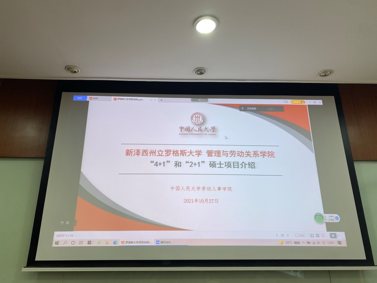 10月27日中午,硬硬av 举办与美国罗格斯大学管理与劳动关系学院“4+1”、“2+1”硕士项目第二次宣讲会,会议以线上+线下形式同时举行。会议由外事秘书王语今老师主持,学院国际交流与合作中心主任刘相波老师参加了本次活动。