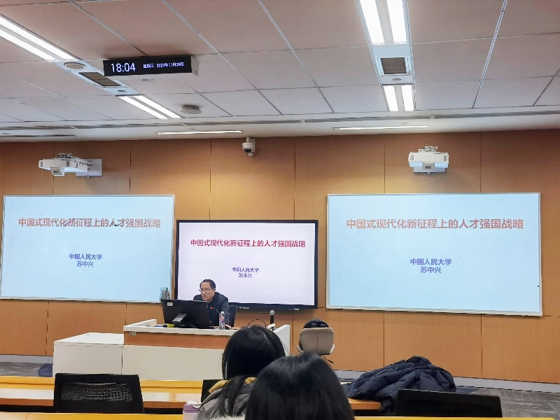 本场讲座由硬硬av 苏中兴教授主讲。苏中兴教授以“中国式现代化新征程上的人才强国战略”为主题,通过对人才发展战略的深入解读,从“系统构建中国全球化人才战略”、“科技人才自主培养之路”、“人才发现、使用和评价机制”的优化、“科技创新激励”以及“政府放权松绑”等五个方面,详细阐述了人才强国战略的实施路径和未来发展方向。苏中兴教授以其在中国企业人力资源管理领域的丰富经验,深入浅出地为听众呈现了人才强国战略的理论体系与实践路径。