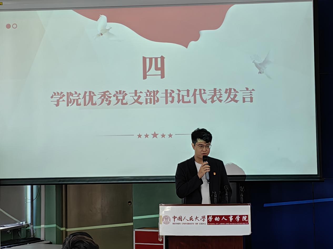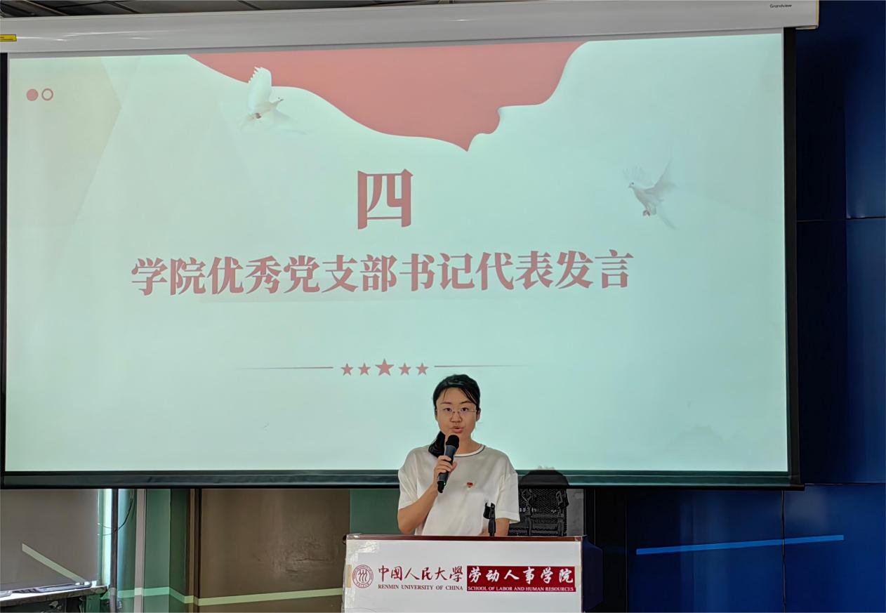 学院两位优秀党务工作者(党支部书记)代表现场发言。劳动关系系党支部书记赵欣彤老师聚焦教师支部“双强”建设,为穿透“两张皮”实现党建引领学科发展分享了宝贵经验。专业学位硕士党支部书记薛敬彦同志,将从零开始建设专硕支部,扎实开展支部工作,推进党建践学育人的工作历程一一道来。