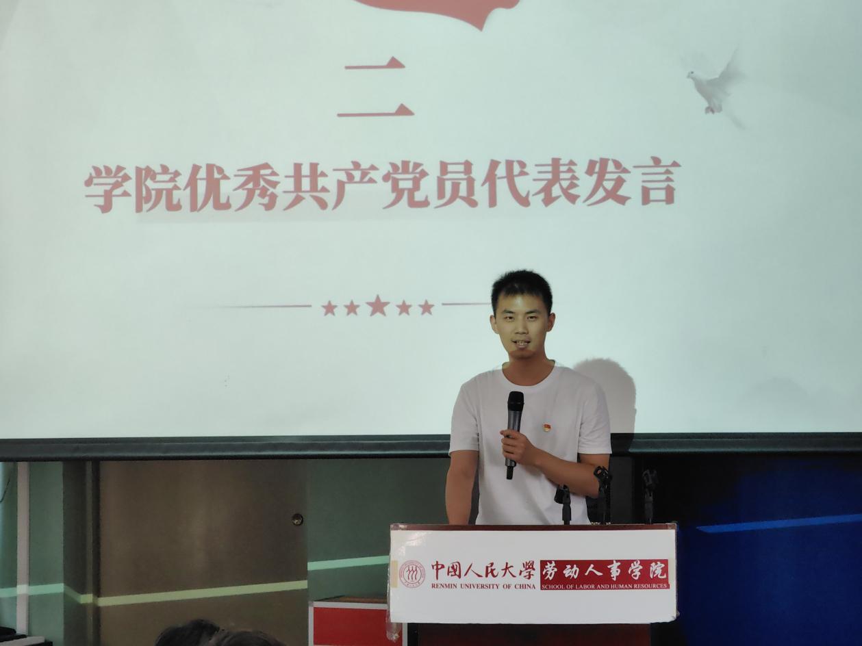 学院优秀共产党员代表吴铮同志现场发言,从优秀学生党员的理解出发,将入伍经历、大学生涯和学生党建工作融会贯通,努力向下扎根、向上生长。