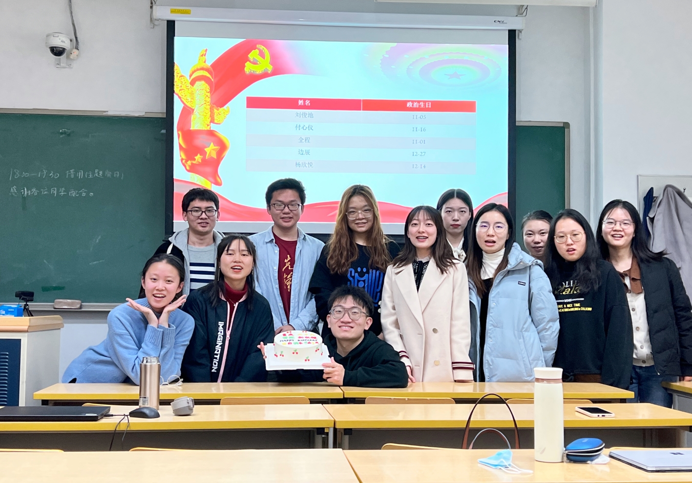 集体学习后,支部副书记边辰将印有“喜庆二十大”字样的专属“政治生日”蛋糕发给过政治生日的党员,为同志们送上真挚的祝福。在场同志结合本次学习,回顾了入党以来的思想变化和成长经历,分享入党故事,追忆入党初心。支部副书记杨欣悦动情地讲述了身边党员参与支教的感人故事,启发同志们将理想扎根基层,用脚步丈量祖国大地。支部宣传委员张云薏为同志们讲述了革命战争年代“火线入党”的先进党员事迹,激励同志们以“吃苦在前,享受在后”严格要求自己。支部党员王梓鉴分享了自己在家乡疫情期间入村入户做核酸检测的经历,表示为疫情防控出力、为群众护平安是共产党员的职责。与会同志深受触动,纷纷表示会始终不忘初心、牢记使命,坚定信仰、继续前行。