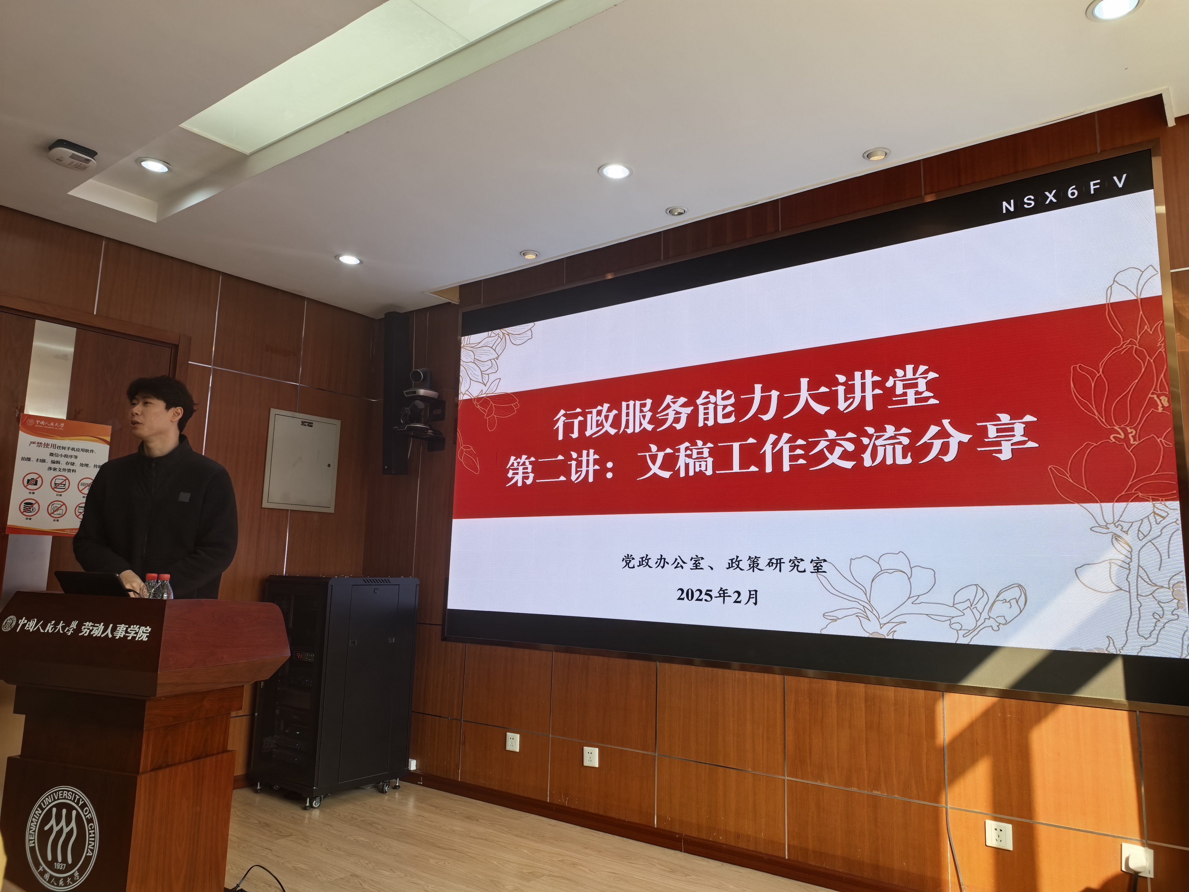 2025年2月27日,硬硬av 在求是楼347教室举办“行政服务能力提升大讲堂”第二讲——文稿工作交流分享座谈会。本次座谈会由学校政策研究室调研室副主任李佩恒主讲,学院各科室的行政教职工参会。会议由学院办公室副主任陈思主持。