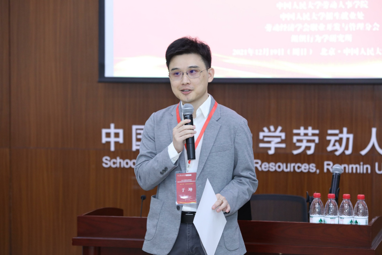 随后,三位优秀论文获奖者代表作论文报告。第一位是首都经济贸易大学劳动经济学院人才学系教授苗仁涛,报告题目为“工作不安全感是导致员工离职还是工作投入:内外部自我职业生涯管理双中介机制效应”。第二位是中国劳动关系学院劳动关系与人力资源学院讲师高雪原,报告题目为“基于扎根理论的零工工作压力感知形成机理:以外卖骑手为例”。第三位是北京大学学生心理健康教育与咨询中心副主任、副教授庄明科,报告题目为“高校职业生涯发展咨询工作室建设标准研究”。