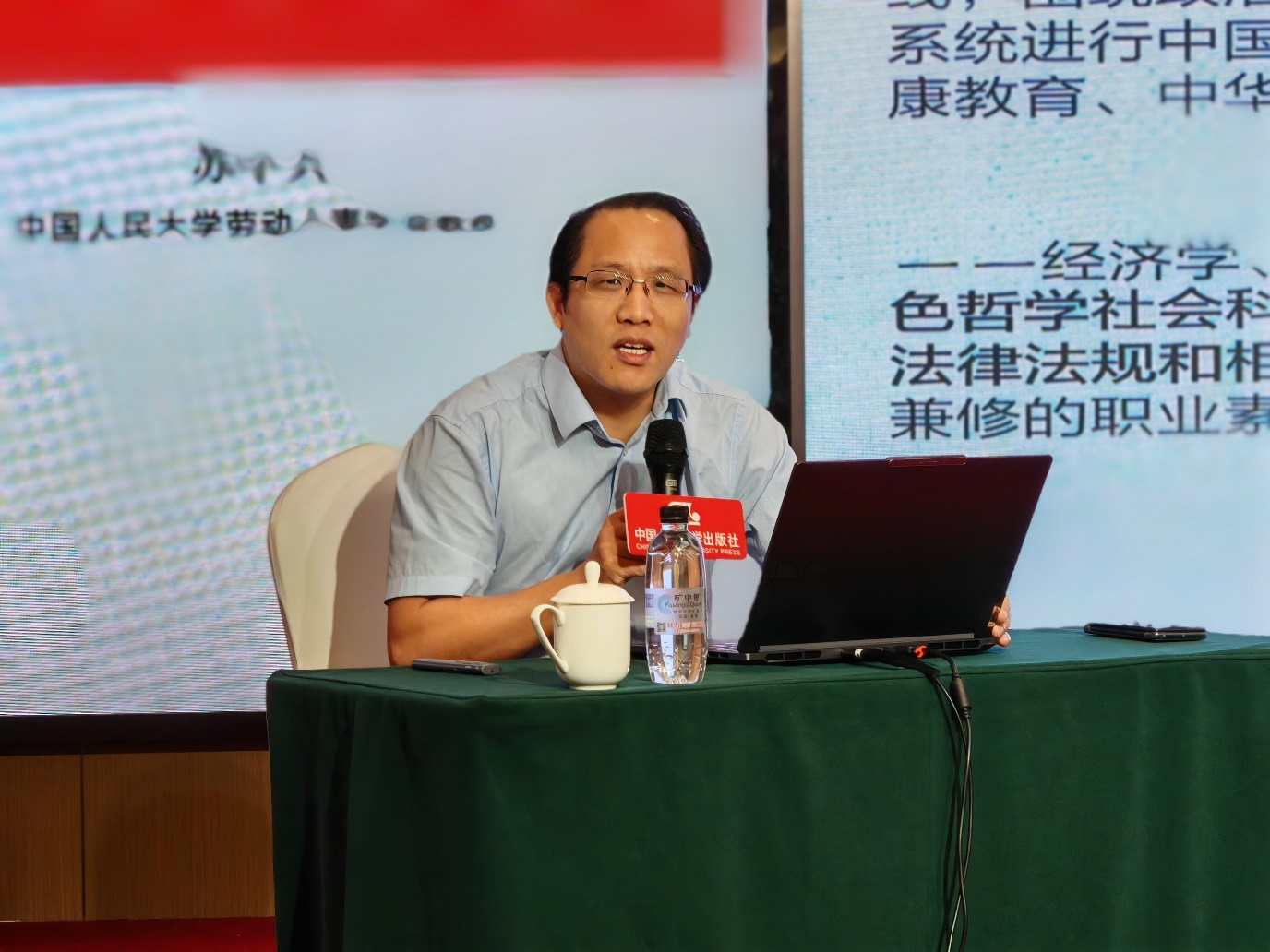 随后,硬硬av 吴玉章课程思政名师工作室(人力资源管理)首席教师苏中兴教授就《如何讲好人力资源管理课程思政》进行了讲座。他首先强调了高校提高人才自主培养能力,以及建设自主学科体系、学术体系和话语体系的重要性。其次,他分享了《人力资源管理》课程思政的整体建设思路,并根据课程大纲着重阐述了每一章可能涉及的思政重点要点。最后,苏中兴教授还就如何将中华优秀传统文化和新时代人才强国战略融入到人力资源管理课程思政中进行了分享,并结合以往课上的教学实践,介绍了相关经典例子。