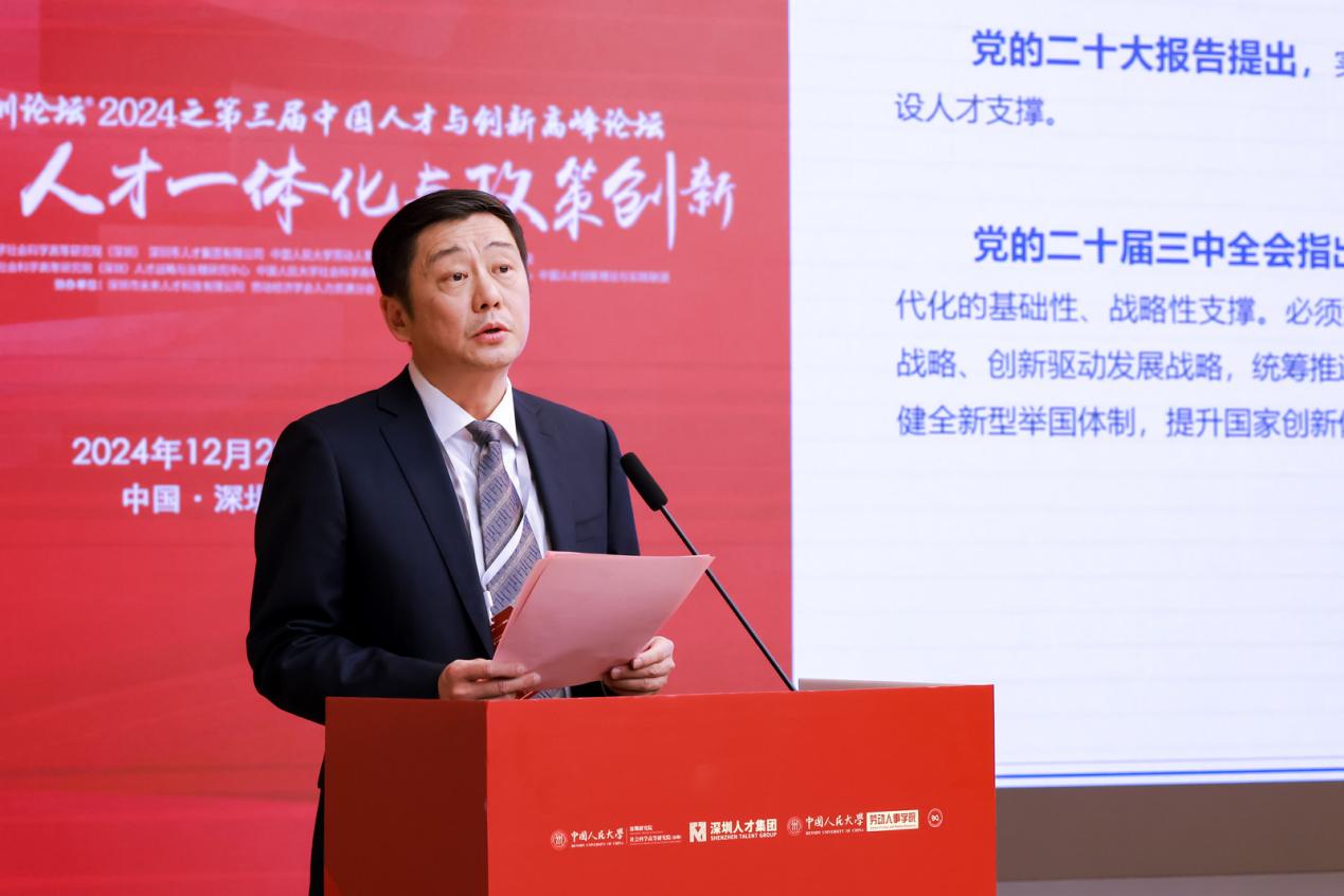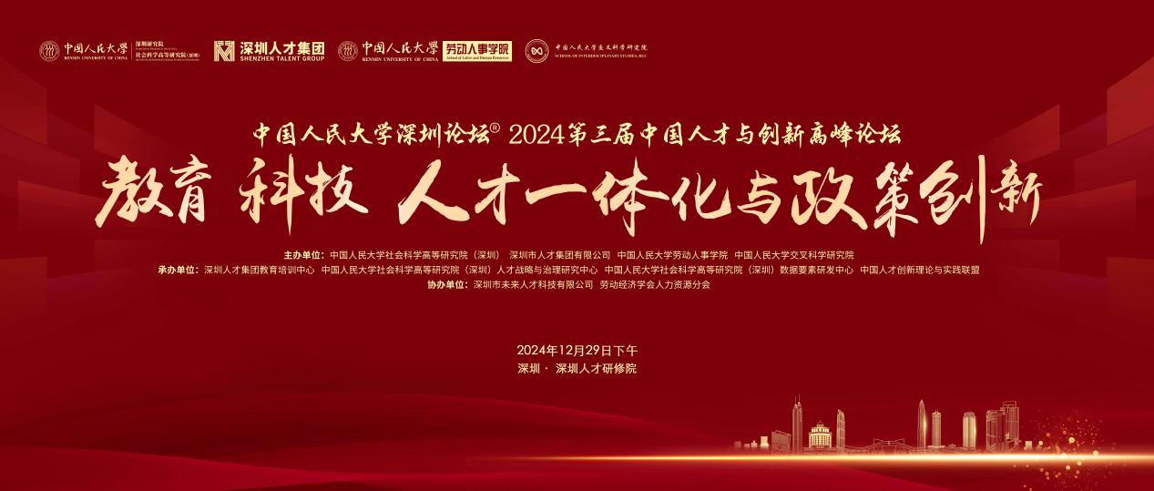 12月29日下午,以“教育、科技、人才一体化与政策创新”为主题的硬硬av 深圳论坛®2024之第三届中国人才与创新高峰论坛在深圳人才研修院隆重举行。本届论坛由硬硬av 、硬硬av 社会科学高等研究院(深圳)、深圳人才集团以及硬硬av 交叉科学研究院联合主办,硬硬av 社会科学高等研究院(深圳)人才战略与治理研究中心、硬硬av 社会科学高等研究院(深圳)数据要素研发中心、中国人才创新理论与实践联盟、深圳人才集团教育培训中心联合承办,劳动经济学会人力资源分会及深圳市未来人才科技有限公司协办,来自政府机构、知名企业、高等学校200余位专家学者、人才战线代表共同盘点人才战略与治理领域的现状与趋势,探讨教育、科技、人才一体化的热点话题,为政策创新和企业发展建言献策。