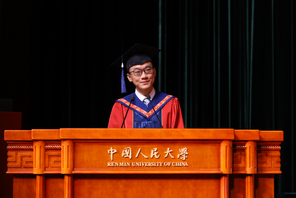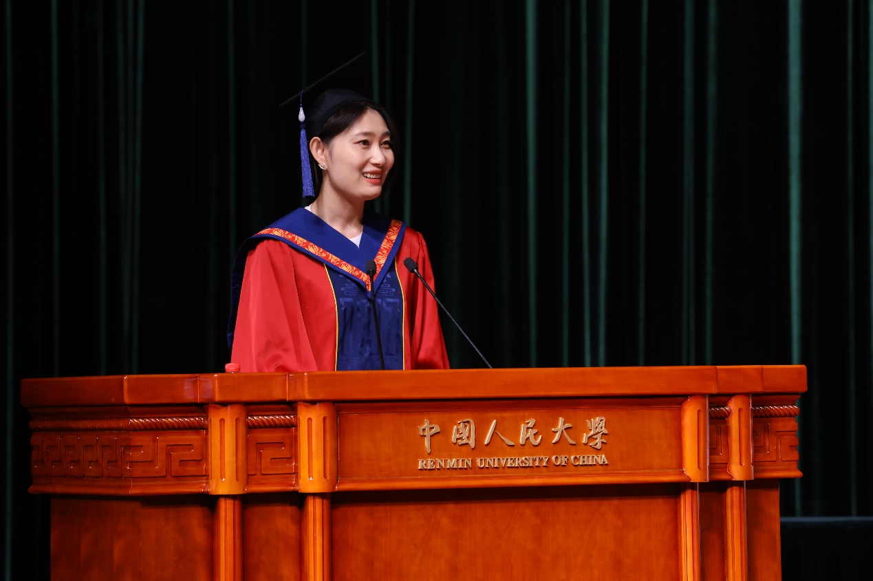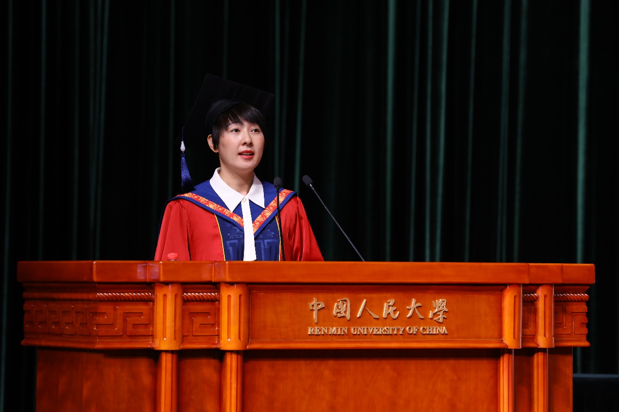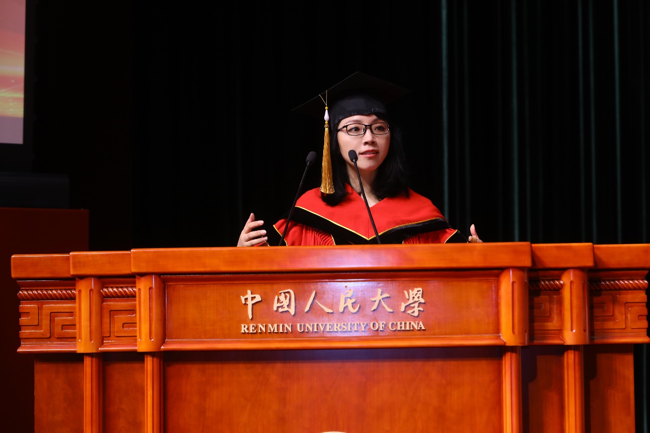 赵稳对学校深情告白道,在人大成长的每一天、每一刻、每一分,学习、考试、论文答辩苦乐并存、忧喜交加,但这些难忘的回忆奏响了生命的交响曲,见证了人大学子成长的点点滴滴,点点滴滴里渗透着追求卓越、勇攀高峰、励志进取、无往不胜的勇气和决心。她提议,同学们将掌声献给辛勤付出的老师以及一直以来都在努力拼搏、不忘初心的自己。