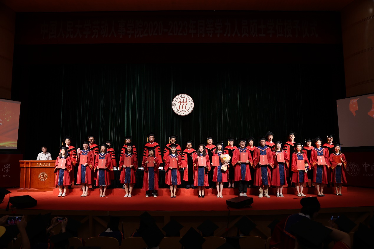 2020-2023年同等学力人员硕士学位授予仪式在明德堂隆重举行,605名2020-2023年硕士学位获得者和500余位硕士学位获得者亲属跨越山水,从五湖四海奔赴而来,共同相聚在最美的盛夏校园,同享期待已久的荣耀时刻。院长赵忠教授、学院原院长曾湘泉教授、原党委书记周石教授以及学院孙健敏、林新奇、程延园、刘松博、李育辉、王桢、丁大建、王青、骆南峰、刘凯、陈雯、毛凯贤、王雪凝17位资深教授、知名学者参加本次仪式。
