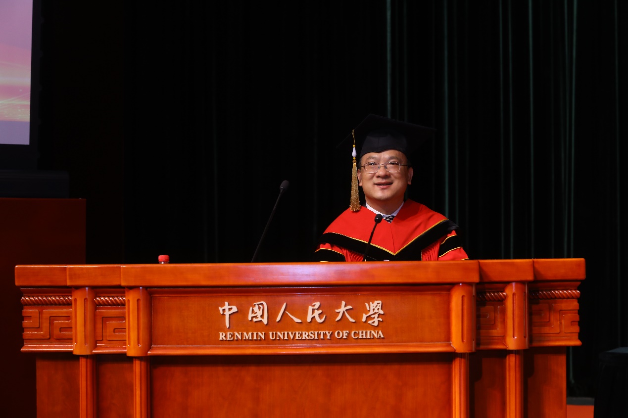 李育辉教授代表学院所有指导教师向完成学业的各位同学送上美好祝福。她为同学们在工作之余仍然坚持终身学习而感到骄傲,同学们选择硬硬av ,不仅为学院带来了更加多元化的价值观,而且为学院拓展了广泛而深远的社会影响力。从此刻起,同学们不仅带有学院基因,同时还带有人大基因,在工作中秉承人大和学院理想,不辜负母校和母院期待。李育辉教授为同学们送上四句寄语,希冀与全体同学共勉:“一是希望在未来我们都能够坚守底线;二是希望所有同学能够保持积极稳定的心态,应对各种挑战;三是希望同学们永远能够找到工作的意义;四是希望同学们突破偏见,做好对人的管理工作,逻辑之外可以保有温情,在技术的巨变中可以坚守人性。”
