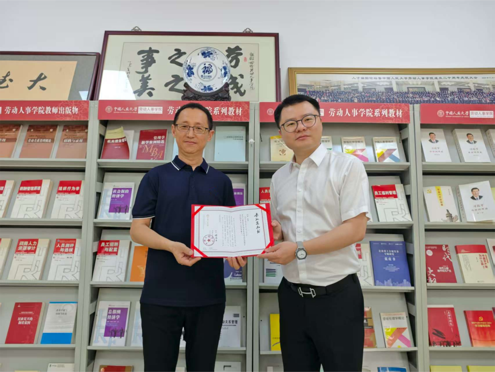 陈姚书记代表学院送上录取通知书的同时向刘军表达了亲切的问候与祝贺。他勉励刘军在博士求学的新阶段,要着力夯实理论基础,紧密结合工作中所积累的丰富实践经验严谨治学,成为劳模精神与人大红色血脉的传承者和践行者,在人大续写新的辉煌篇章。