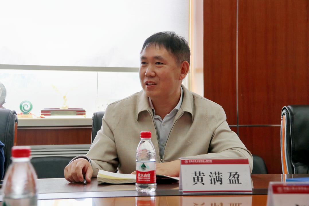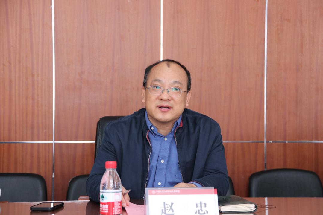 首先,赵忠教授对首都师范大学管理学院黄满盈教授等一行人表达了热烈欢迎,就学科交流、学生交流、社会实践实训、大学生就业问题等内容进行了简要介绍,并强调人民大学与北京高校长久以来保持高效合作、共同培养的良好传统,希望通过本次交流促进双方的学科和专业建设。
