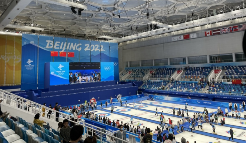 进入比赛大厅冰壶赛场,讲解人员为大家详细讲解了游泳道“变身”冰壶道、“水立方”切换为“冰立方”的技术,充分彰显了“冰立方”改造工程背后工程实力与科技实力。此外,工作人员还热情解答了支部同志的疑惑,尤其是场馆内冰壶赛道、冰面上方、看台区“三种温度”并存背后的科学原理,令同学们叹为观止。