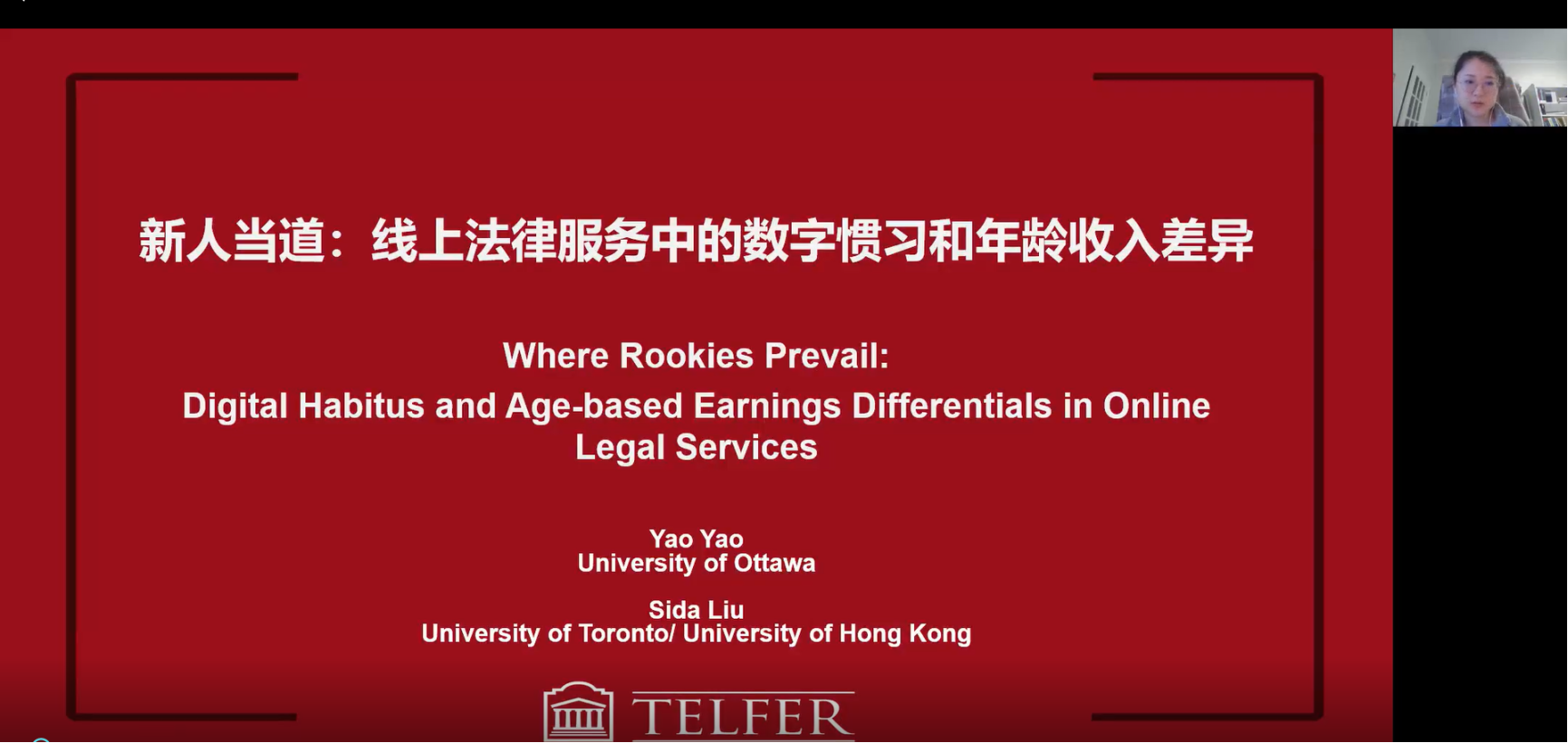 主办,劳动关系系承办的“劳关天下”系列讲座于2022年11月16日(星期三)上午9点30分,通过腾讯线上会议的方式成功举办。来自渥太华大学的姚瑶老师进行了题为“新人当道:线上法律服务中的数字惯习和年龄收入差距”的学术分享。本次学术讲座由硬硬av