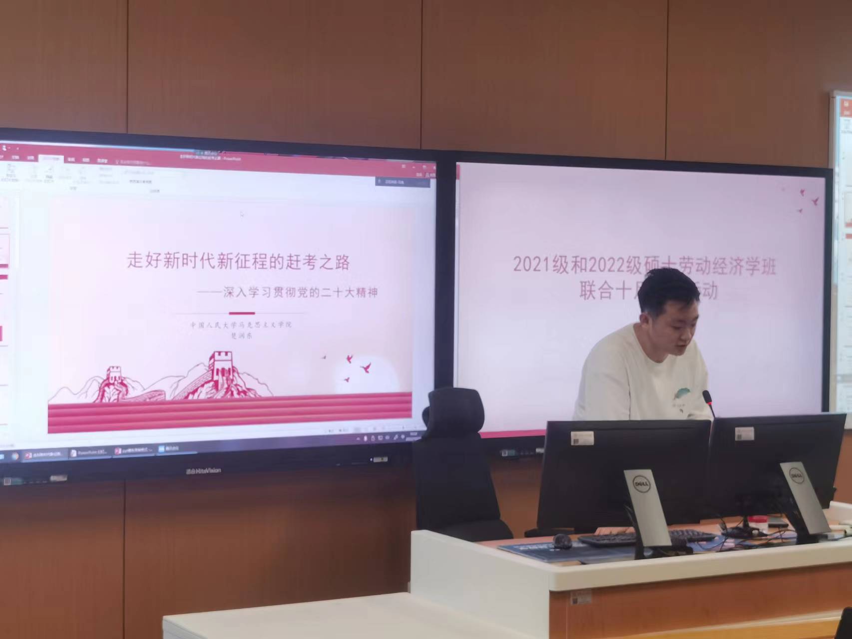 2022年10月23日上午,硬硬av 2021级、2022级硕士劳动经济班党支部开展“学习党的二十大精神”联合党日。本次会议由2021级硕士劳动经济班党支部书记马迪主持,两个党支部全体成员通过线下线上方式共同参与。