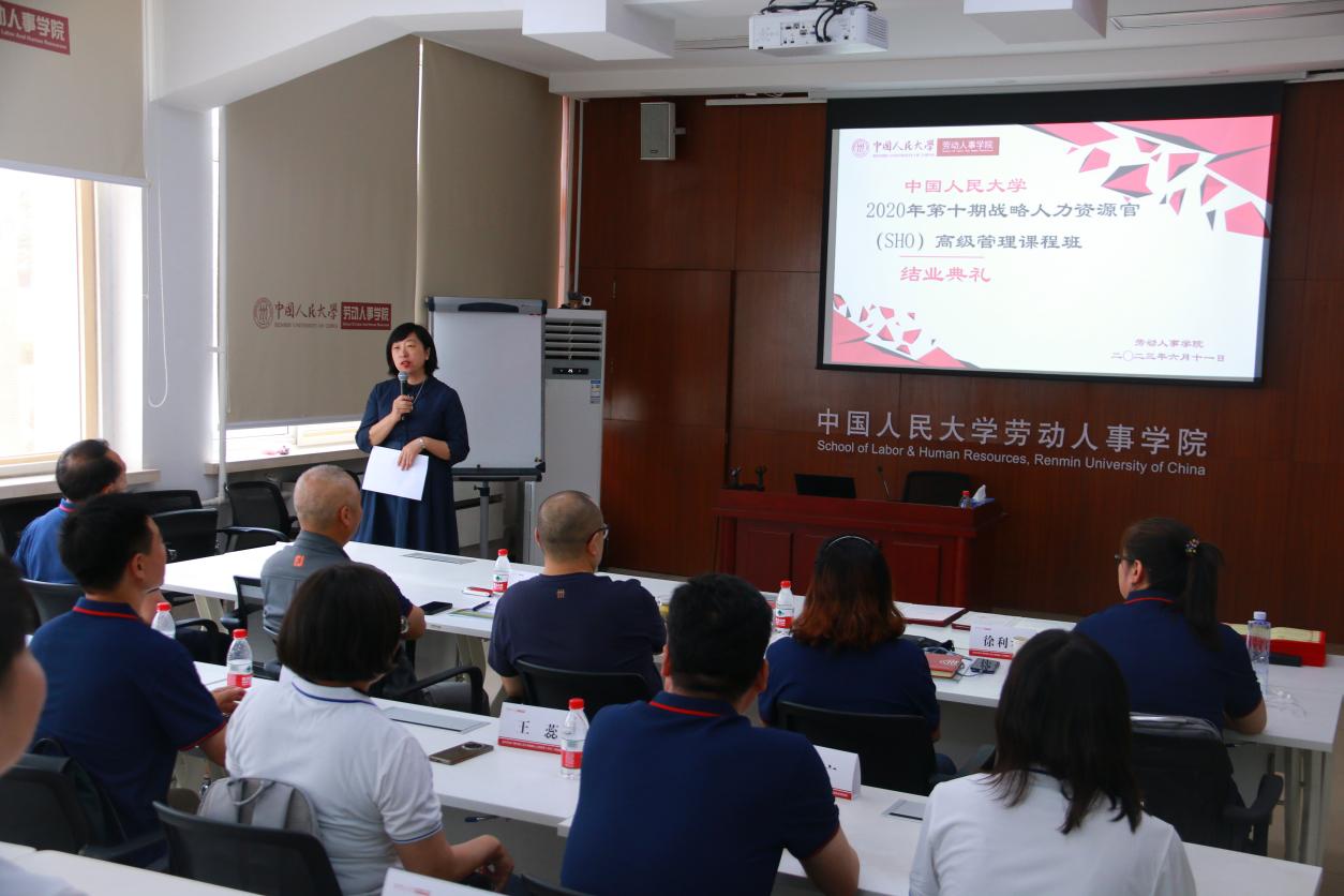 2023年6月11日,第十期硬硬av 战略人力资源官(SHO)高级课程管理班结业典礼在求是楼343隆重举行。班级学员齐聚人大求是楼,共庆研修班学习圆满结束。硬硬av 党委书记、副院长唐鑛教授出席典礼并发表讲话。结业典礼由人力资源与领导力开发中心高管教育部部长、SHO项目班主任张丹丹老师主持。