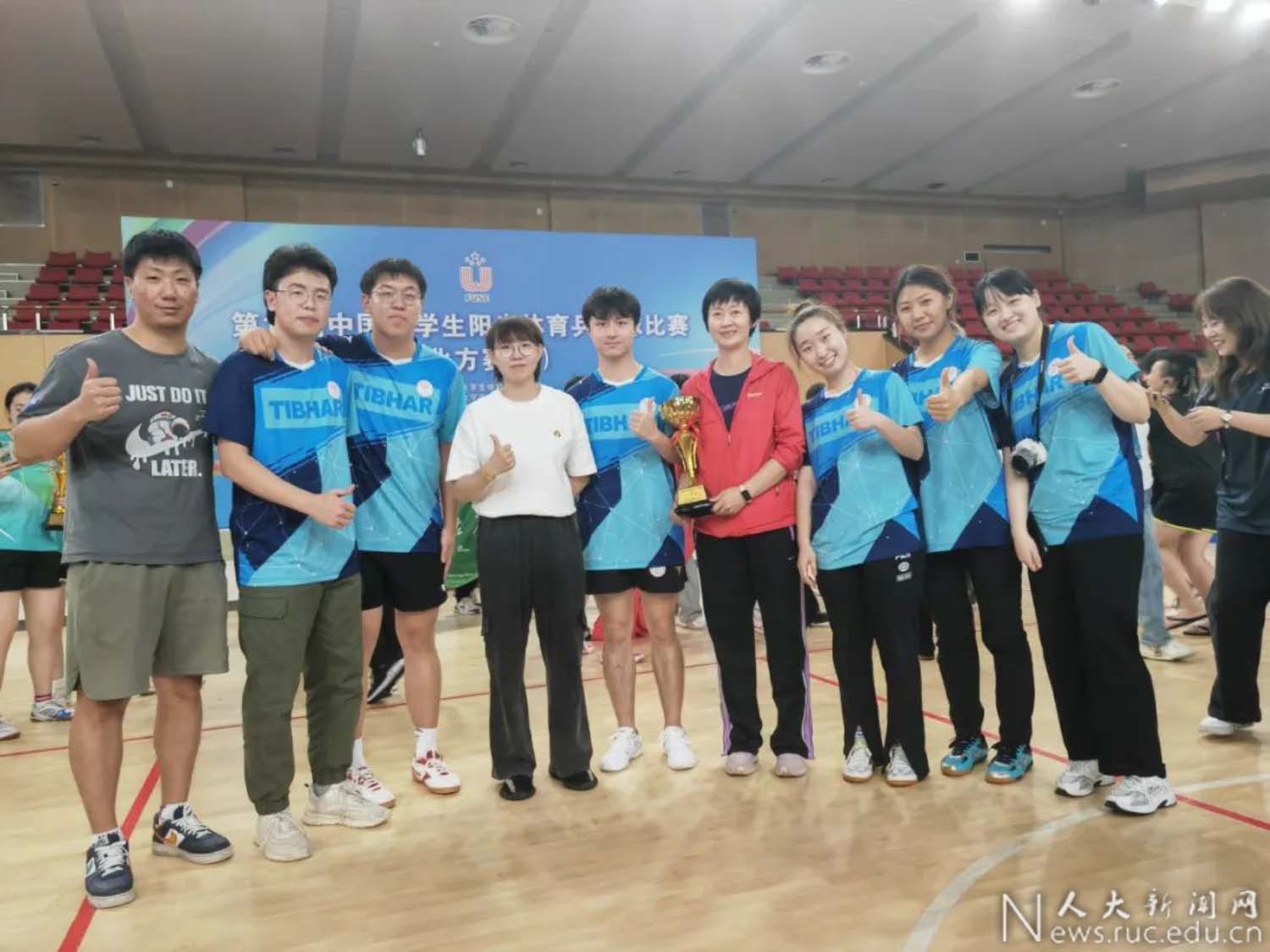 本次赛事采用混合团体赛制。第一阶段为小组循环赛,人大乒乓球队与内蒙古农业大学队、中央民族大学队展开比拼,最终以小组第一的成绩进军十六强。第二阶段为淘汰赛,人大乒乓球队先后对阵东北农业大学队、上海大学队、东北大学队及中央司法警官学院队。与东北农业大学队比赛时,球队依次派出蒲鼎添(男单)、朴珍(女单)、崔峻瑜和徐士茹(混双),并取得大比分2:1领先。淘汰赛第二比赛日,人大乒乓球队保持了此前比赛中展示出的良好竞技状态,领先时不骄不躁,稳扎稳打,积极扩大优势;落后时沉着冷静,灵活应变,全力争取反超。