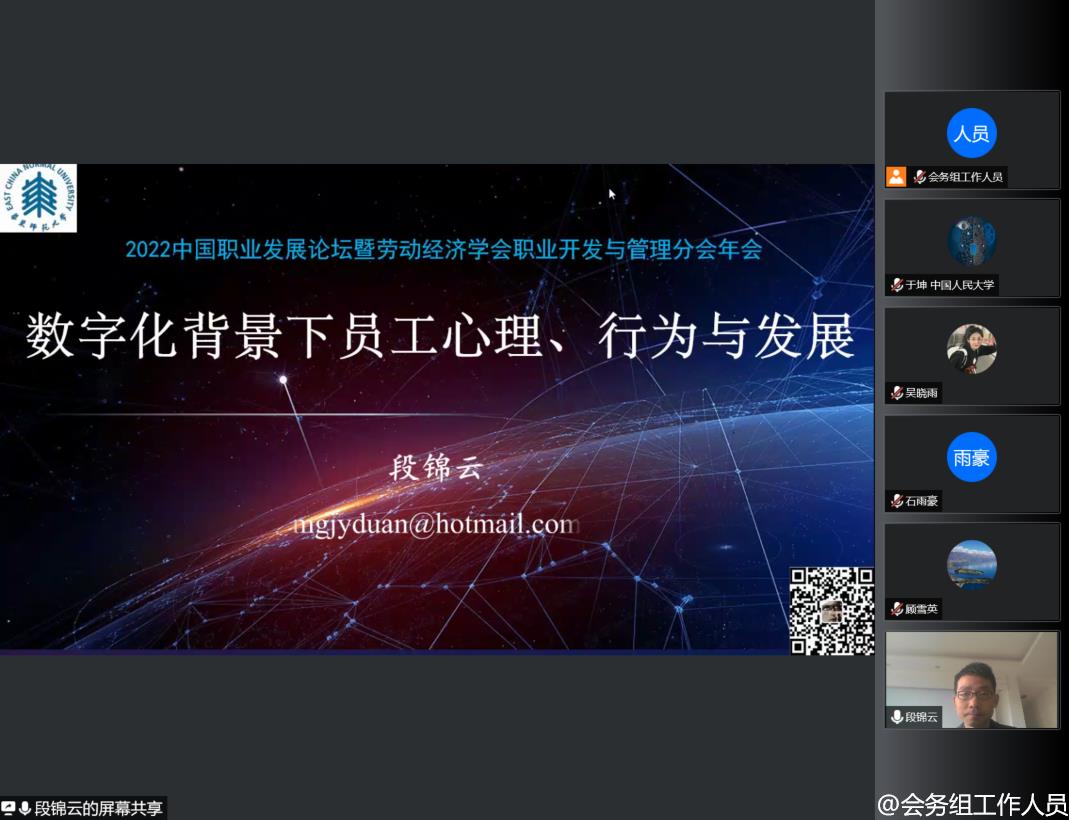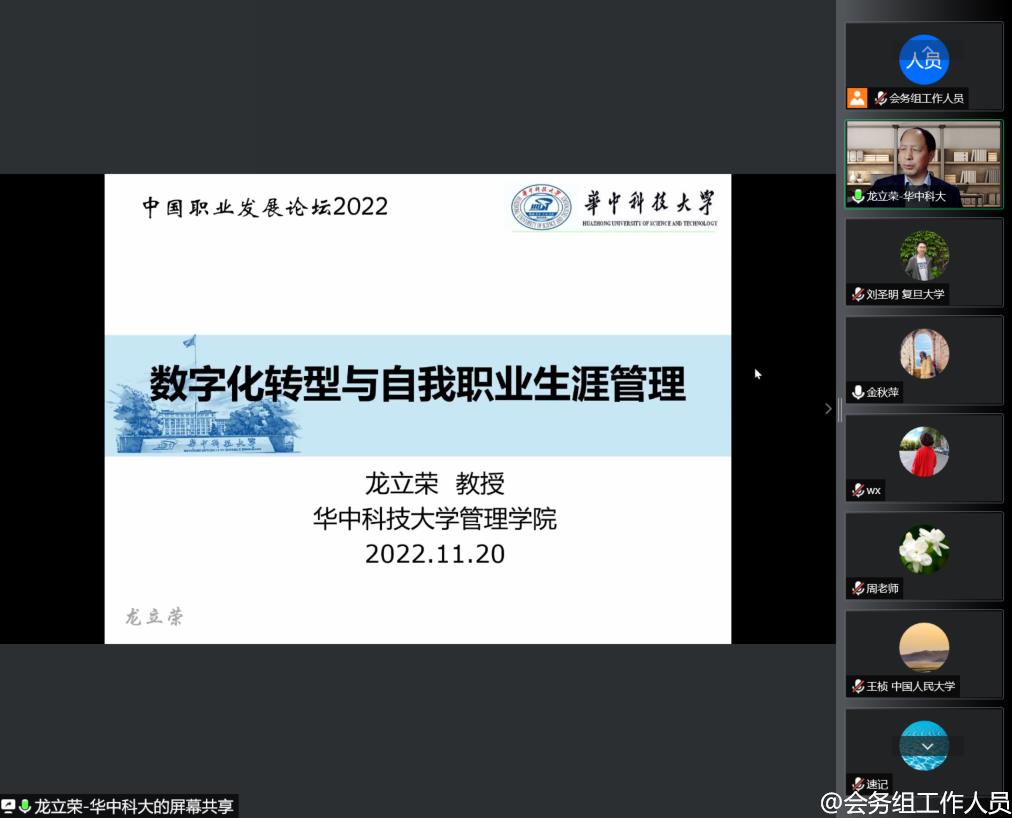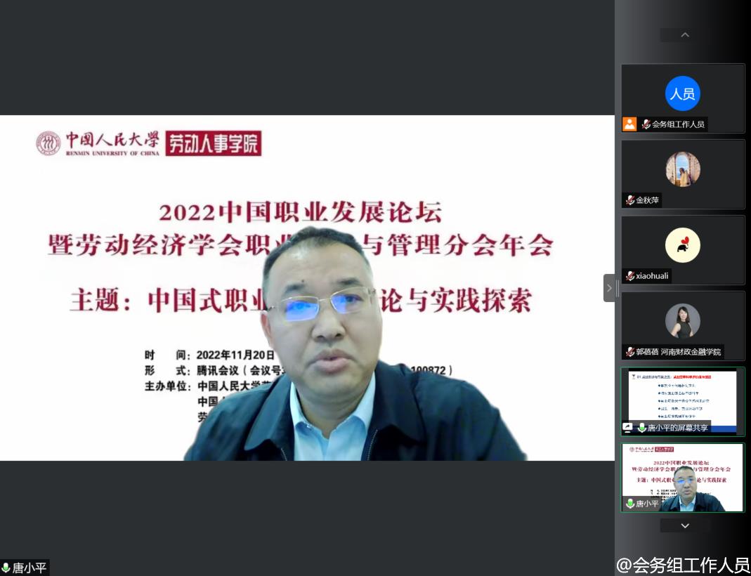 2022年11月20日,2022中国职业发展论坛暨劳动经济学会职业开发与管理分会年会成功举办。本次会议由硬硬av 、硬硬av 招生就业处、劳动经济学会职业开发与管理分会和硬硬av 组织行为研究所联合主办。鉴于疫情防控政策,本次会议采取线上方式进行。会议齐聚了我国职业开发与管理领域最具影响力的专家学者,吸引了来自全国职业开发与管理领域的学者、企业家和实践者线上参加本次会议。会议以“中国式职业发展:理论与实践探索”为主题,聚焦中国情境下职业生涯的发展规律以及应对策略,探究中国特色职业发展之道。