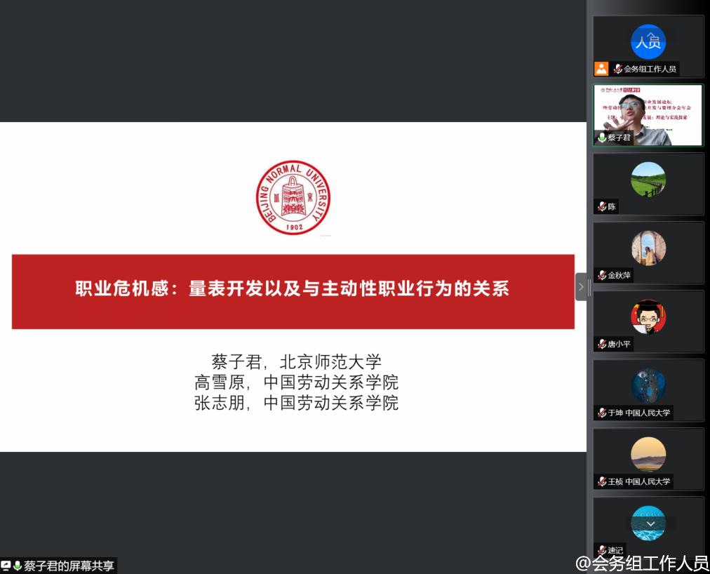 北京师范大学经济与工商管理学院助理教授蔡子君做题为“职业危机感:量表开发以及与主动性职业行为的关系”的主题演讲。蔡子君老师首先分析了我国员工职业危机感的现状,随后介绍了职业危机感量表的开发过程和结果,并在此基础上探求职业危机感和职业主动性关系,并提出应对职业危机感的思路。