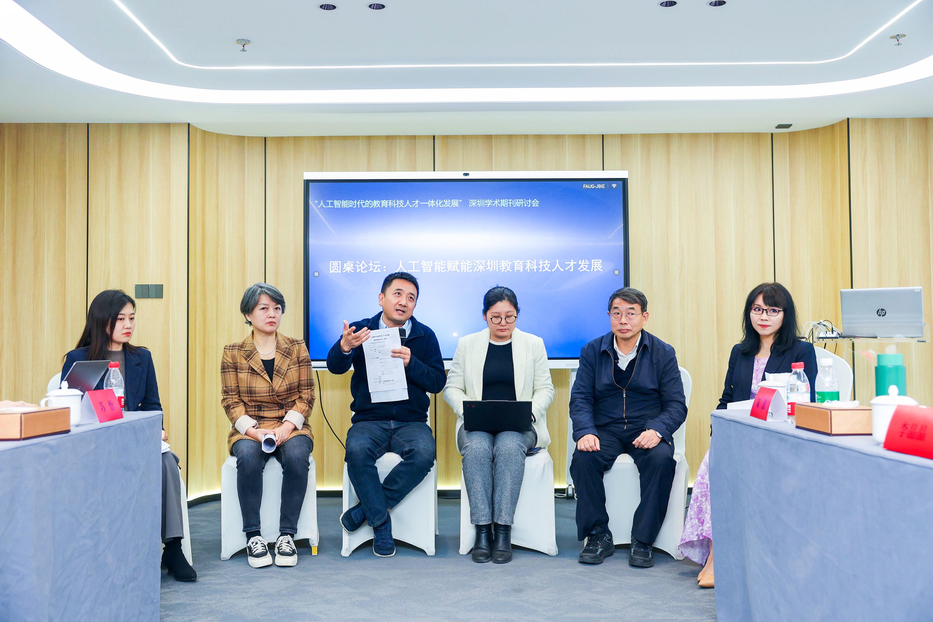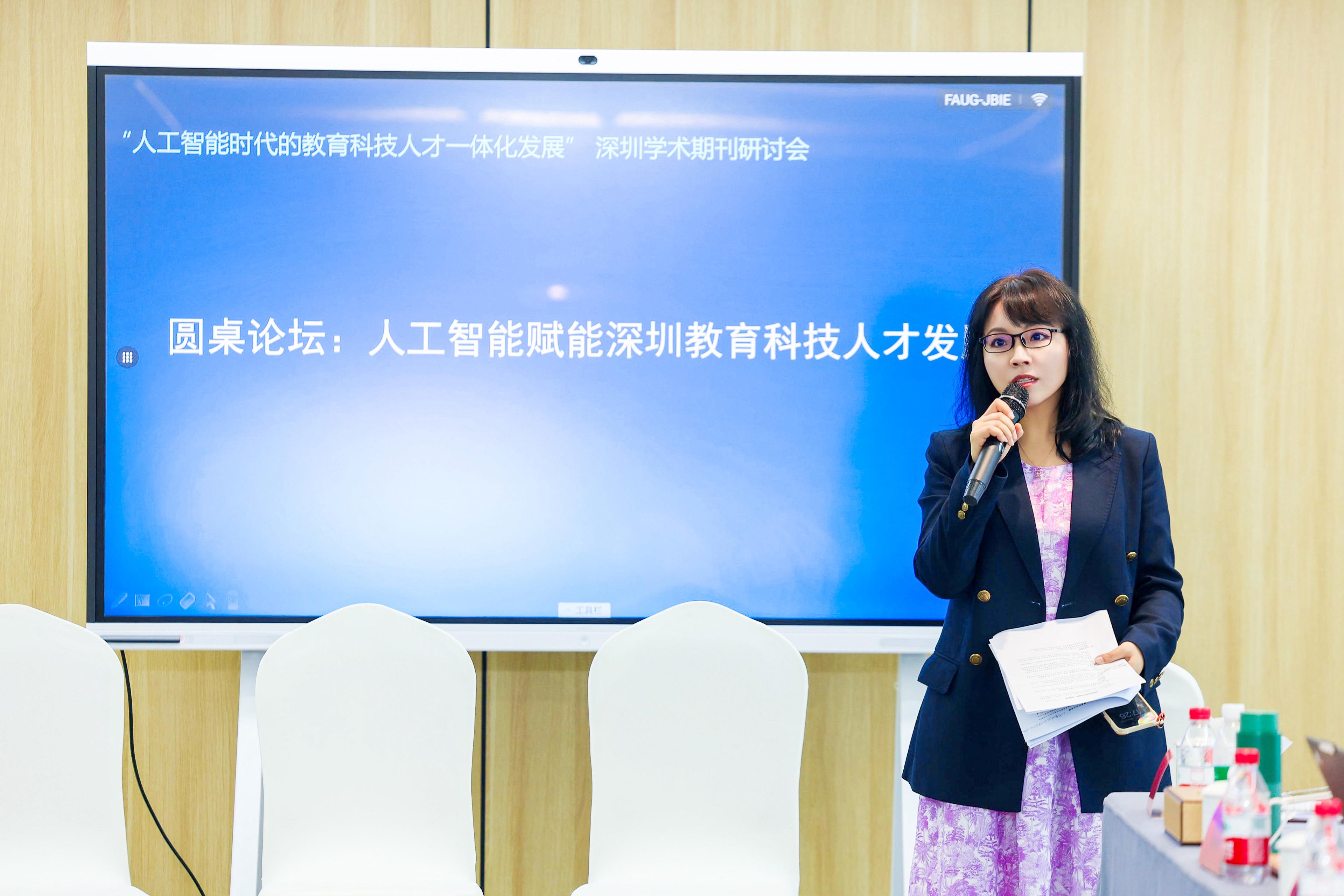 会议设置圆桌论坛环节,由硬硬av 人才工作领导小组办公室副主任、硬硬av 教授李育辉主持,邀请硬硬av 期刊管理中心编审、《经济理论与经济管理》原副主编杨万东教授,硬硬av 书报资料中心经济编辑部主任张皓,中国科学院深圳先进技术研究院高性能计算研究中心主任、深圳市高性能大数据处理平台主任魏彦杰教授,《暨南学报》副主编李晶晶,硬硬av 党委副书记、社会保障系教授郭瑜等担任嘉宾,围绕“人工智能赋能深圳教育科技人才发展”展开研讨。