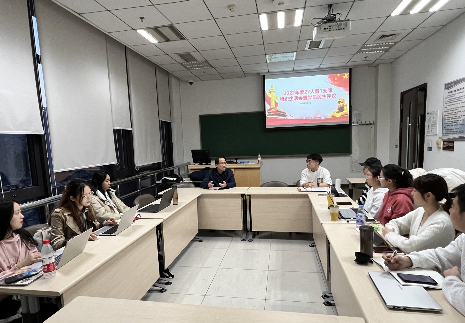 3月2日晚,2022级硕士人力资源管理1班党支部在明德国际楼0308召开2022年度组织生活会,并开展民主评议党员工作。会议由支部书记边辰主持,支部全体党员参加。院党委委员、支部理论导师苏中兴受邀参会。