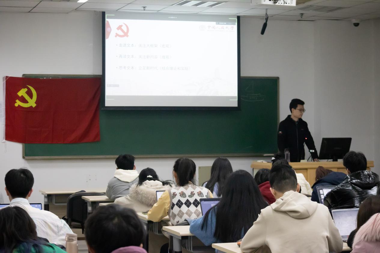 3月18日,本科第一党支部在明德主楼0304举行了“立足新时代的总结和动员——共同学习十九届六中全会精神”主题党日活动。本次活动邀请到硬硬av 马克思主义学院博士生宣讲团讲师于锦洋同志分享党课专题。在宣讲中,于锦洋从“走进文本”、“再读文本”、“思考文本”三个层次为同志们解读了《中共中央关于党的百年奋斗成就和历史经验的决议》和十九届六中全会精神。随后,党支部书记付强就学校第十五次党代会和支部建言献策工作情况作了进一步说明。
