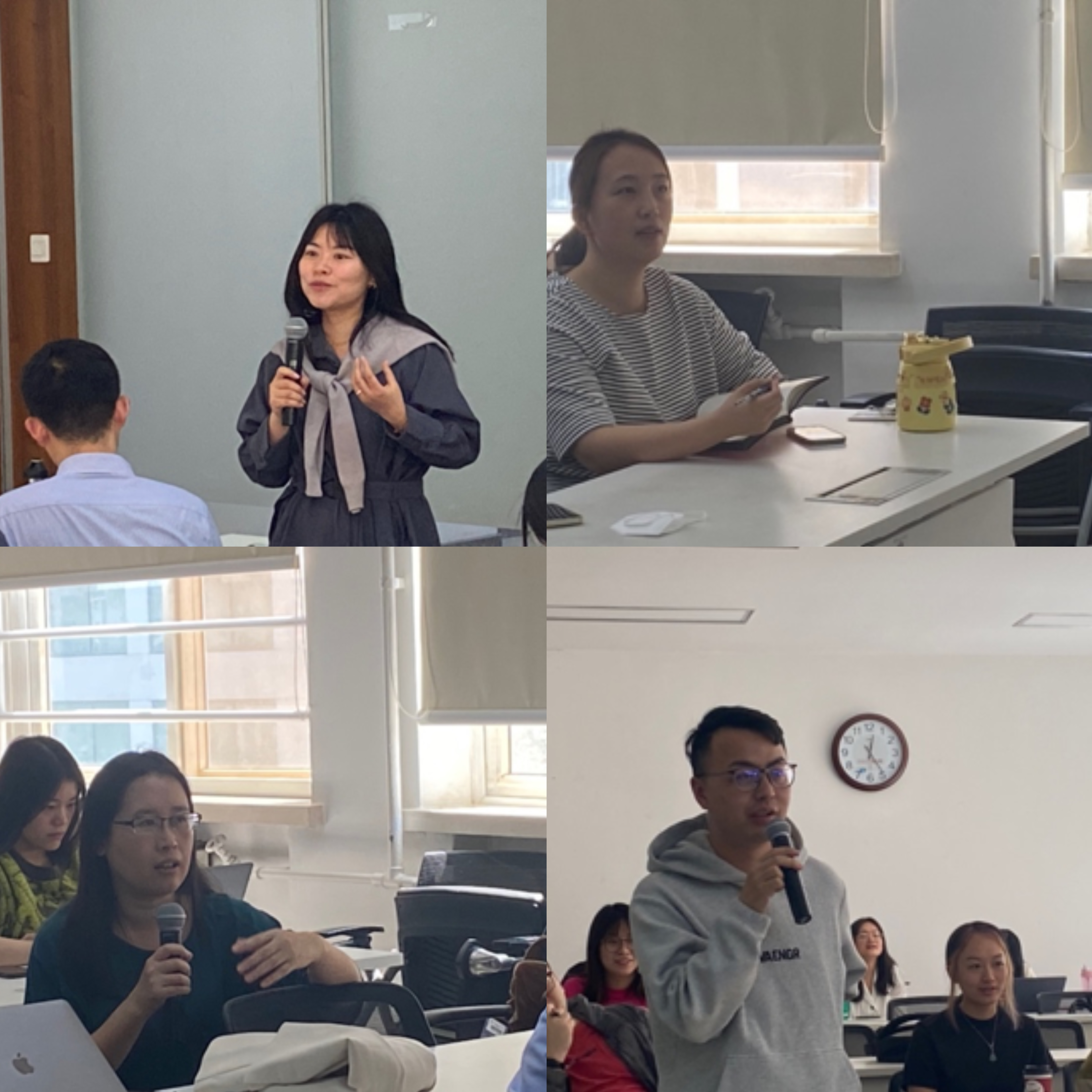随后,徐世勇教授和金秋萍讲师从求职报告的选题、求职报告中如何更好回应听众的问题和如何更好展现个人研究实力的角度进行了精彩点评。其他与会老师们也从选题依据、论文结构、未来研究方向和求职注意事项角度分享了观点。在交流讨论环节,栾宇翔博士生提出了自己关于求职的疑问,张颖同学也做出了回应。