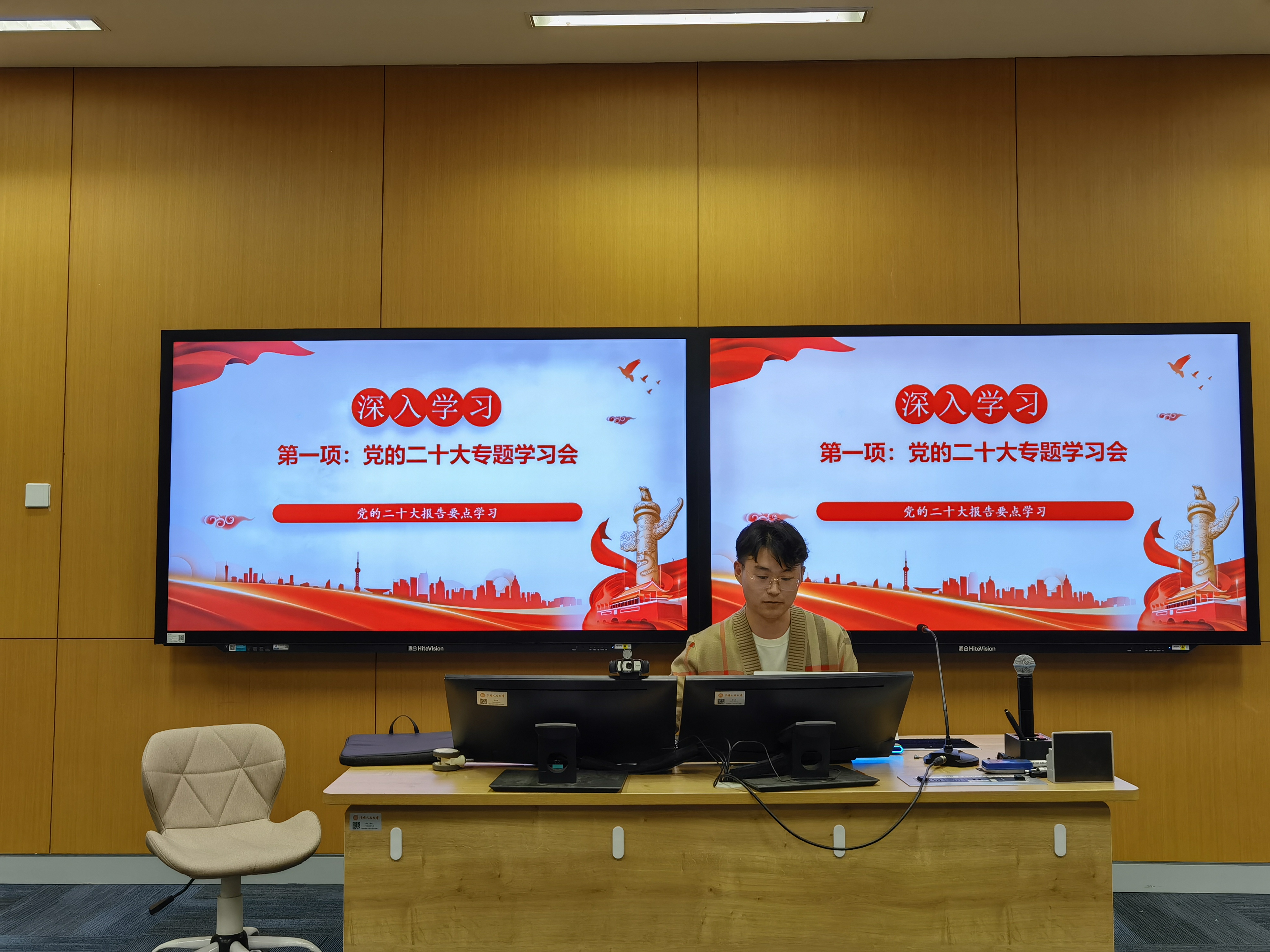 本次活动包括三项内容。第一项,纪检委员张浩楠带领与会同志认真学习了党的二十大报告中的要点,通过回顾新时代十年的伟大变革、领悟新时代新征程中国共产党的中心使命任务,加深了对党的二十大精神的理解。最后,张浩楠带领支部成员重温习近平总书记的寄语,号召与会同志要坚定不移听党话、跟党走,怀抱梦想又脚踏实地,敢想敢为又善作善成,立志做有理想、敢担当、能吃苦、肯奋斗的新时代好青年,让青春在全面建设社会主义现代化国家的火热实践中绽放绚丽之花。