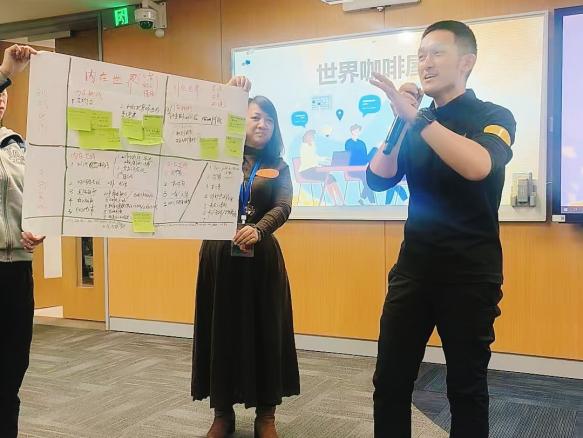 本次活动的高潮环节为 “世界咖啡屋” 互动讨论。六位经验丰富的校友担任 “摊主”,围绕 “35岁危机与职业天花板”“工作与家庭平衡策略”“人工智能在行业中的应用挑战” 等核心议题,引导现场校友分组展开深度交流。讨论过程中,思维碰撞频繁,灵感火花不断,校友们既解决了个人困惑,也挖掘出潜在合作机会。