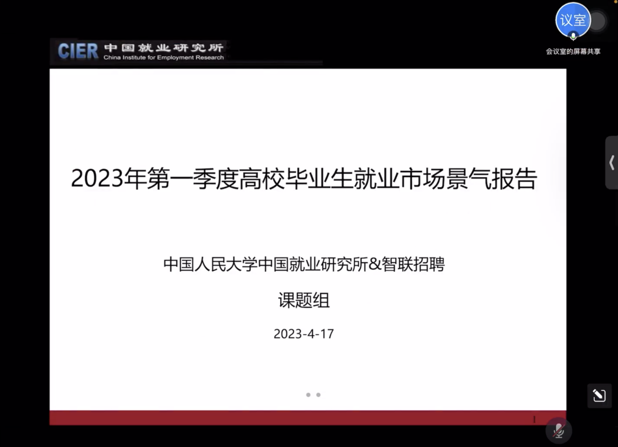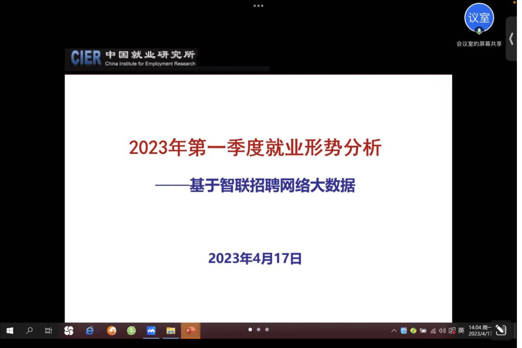 2023年4月17日下午,由硬硬av 中国就业研究所主办的2023年第一季度中国就业季度分析会在硬硬av 成功举办。人力资源和社会保障部就业促进司副司长陈勇嘉、国家统计局人口和就业统计司副司长孟灿文、智联招聘集团、苏州工业园区人力资源开发有限公司、58同城招聘研究院、滴滴发展研究院、美团到家公共战略中心、阿里研究院、北京民生智库科技信息咨询有限公司、招商银行信用卡中心等政府部门和企业的领导和专家,硬硬av 中国就业研究所所长曾湘泉、硬硬av 院长赵忠、硬硬av 人才工作领导小组办公室副主任李育辉、硬硬av 副院长郭瑜,中国就业研究所研究员刘尔铎、丁大建、耿林、黄伟、陈轩等学者和研究生、博士生50余人以线上线下相结合的方式参会。中国就业研究所研究员王非主持会议。