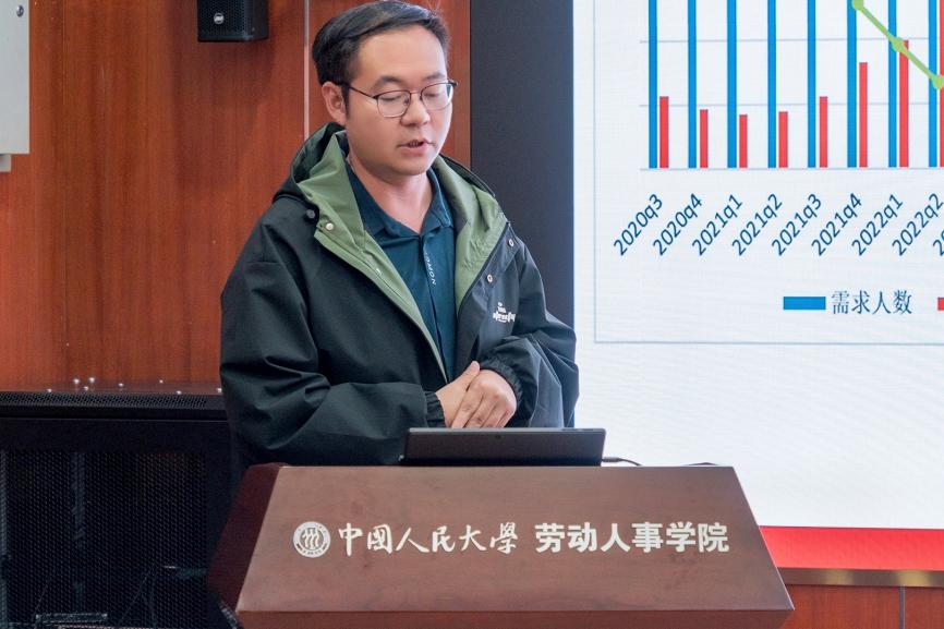 教育部学生司副司长苟人民、人力资源和社会保障部就业促进司副司长陈勇嘉、国家统计局人口和就业统计司副司长吴珊等政府部门领导及工作人员和智联招聘集团、苏州工业园区人力资源开发有限公司、58同城、淘天集团研究中心、滴滴发展研究院、美团到家公共战略中心等公司专家以及硬硬av 中国就业研究所所长、硬硬av 教授曾湘泉,中国就业研究所研究员、硬硬av 副教授耿林等20余人参会。硬硬av 中国就业研究所研究员、硬硬av 副教授王非主持会议。